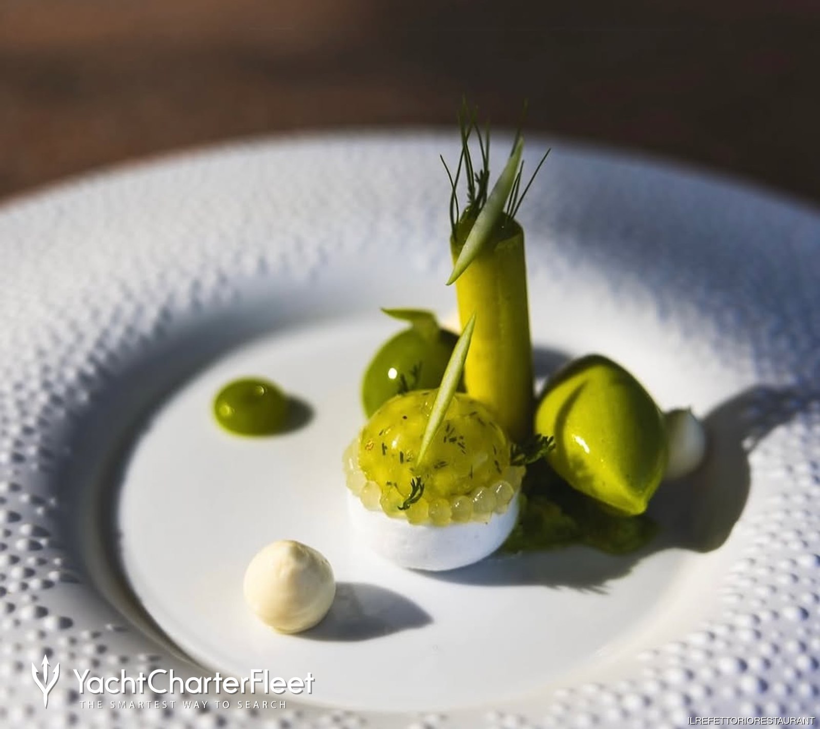 The restaurant emphasizes the use of organic ingredients and follows sustainable practices in its cooking, ensuring that each dish is both flavorful, environmentally conscious, and provides a true taste that represents charter routes in Italy.