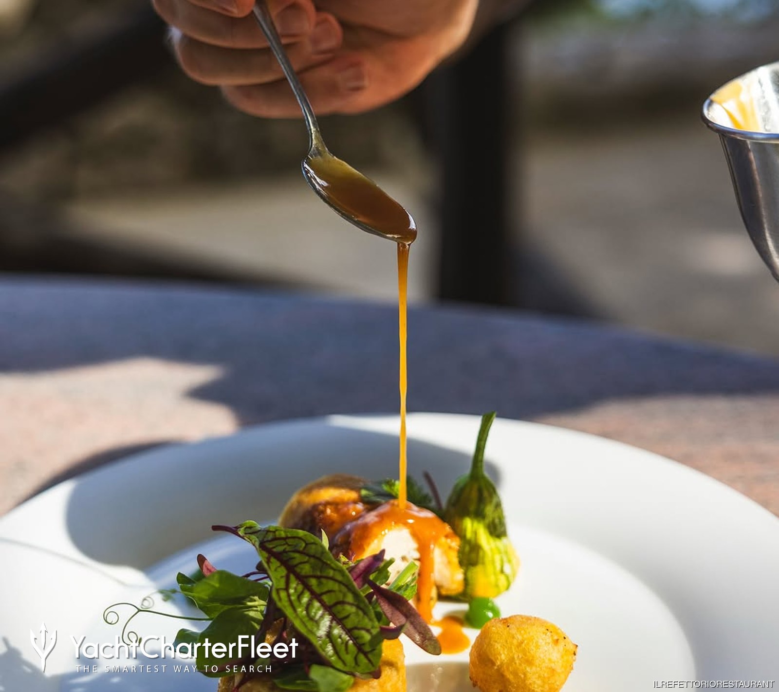 The view enhances the entire dining experience, whether guests are starting their day with a peaceful breakfast or enjoying a romantic dinner under the stars. This makes Il Refettorio a memorable highlight for any Mediterranean yacht charter itinerary.