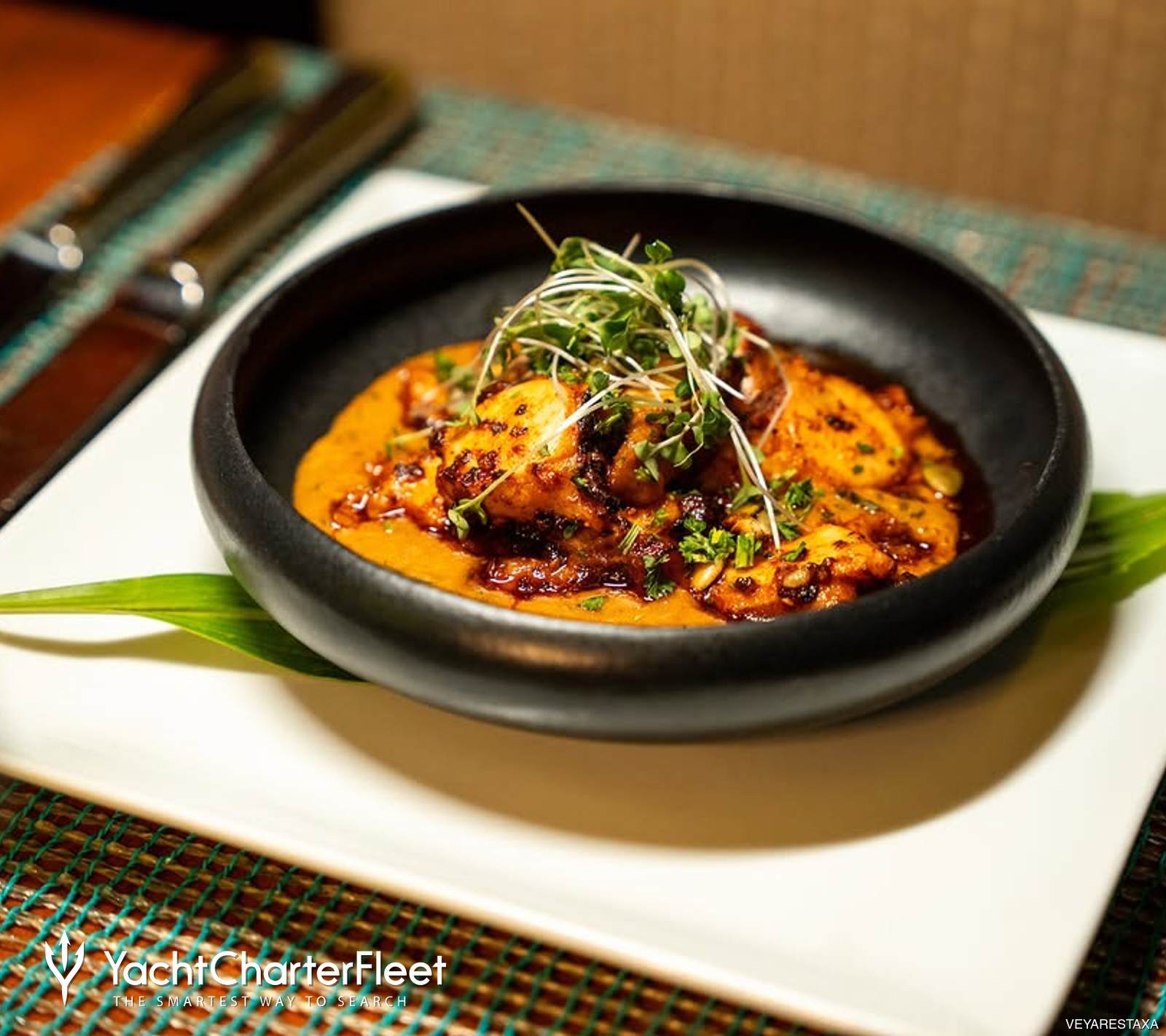 Chef Carrie Bogar has built her culinary philosophy around what she calls the “Cuisine of the Sun", a fusion of flavours inspired by warm destinations around the world. At Veya, Caribbean influences meet the tastes of North Africa, India, and South East Asia. Every dish is designed with balance in mind, combining vibrant spices, fresh herbs, and local ingredients to create a dining experience that feels familiar yet exotic.