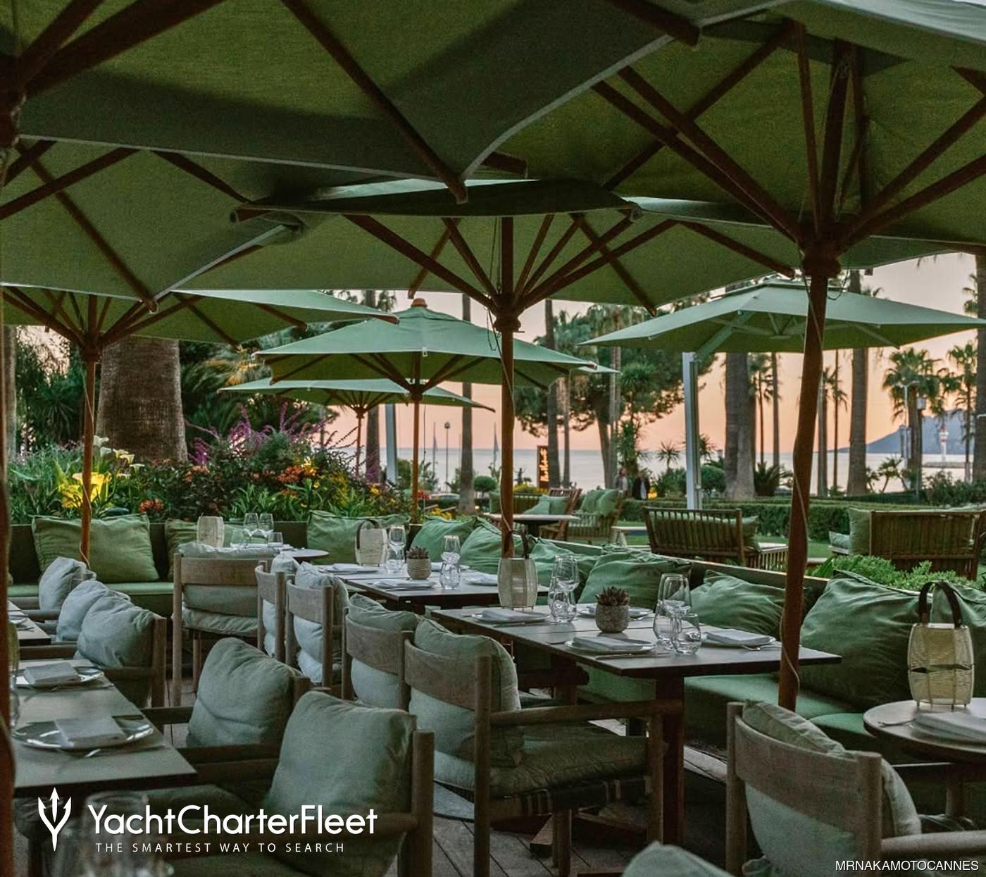 Located on the famous Boulevard de la Croisette, Mr. Nakamoto offers a refined dining experience in one of Cannes' most iconic spots. The restaurant’s Art Deco-inspired interior provides a stylish setting for those who prefer a classic dining room ambiance, while the garden terrace overlooking the Mediterranean Sea offers a more relaxed, scenic option, an ideal stop on a French Riviera yacht charter.