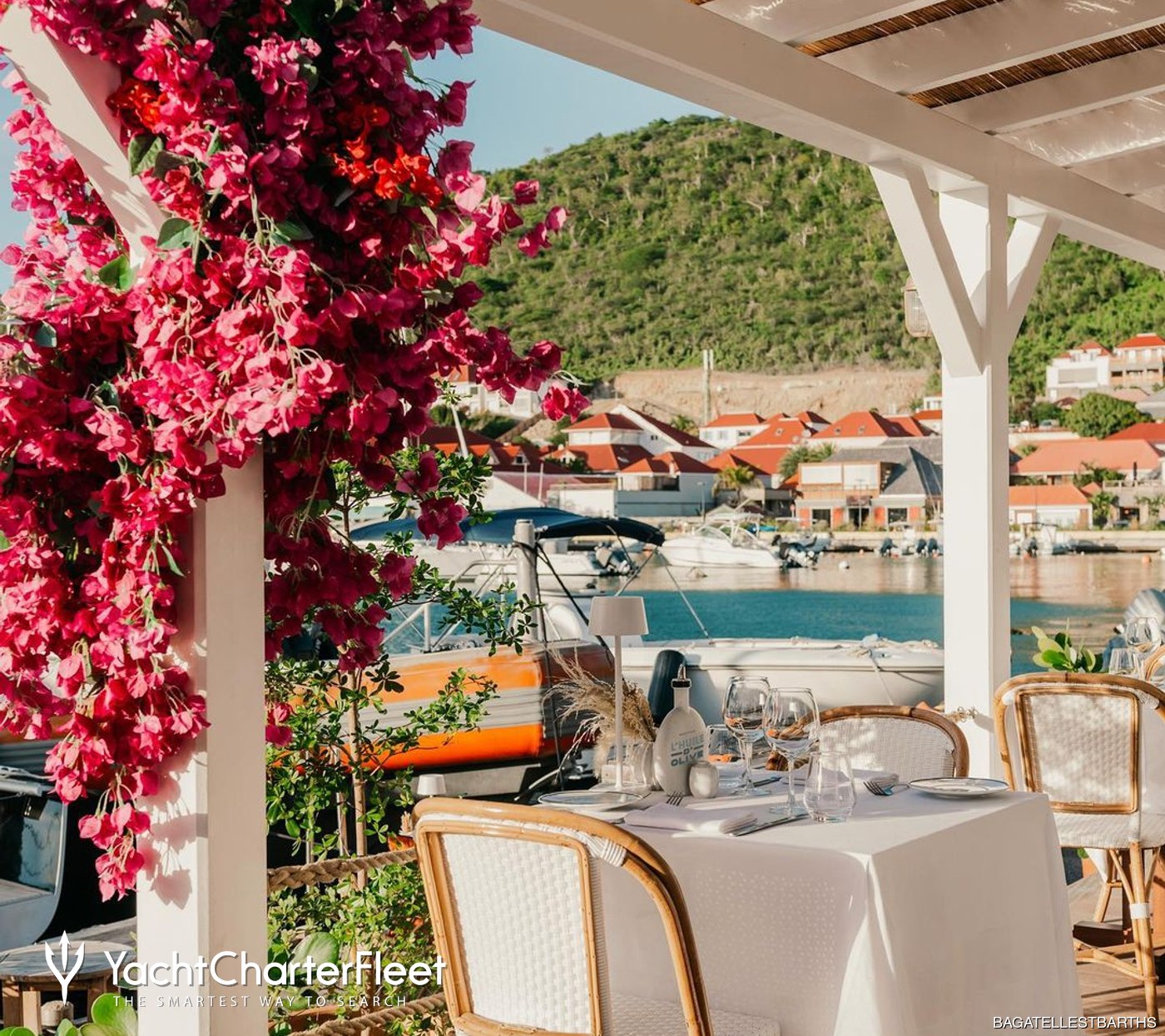 Indeed, whilst enjoying selections from the varied menu of French favorites boasting Caribbean twists, visiting motor yacht charter guests can enjoy looking out across the docks and soaking up the splendor of the picturesque surroundings.
