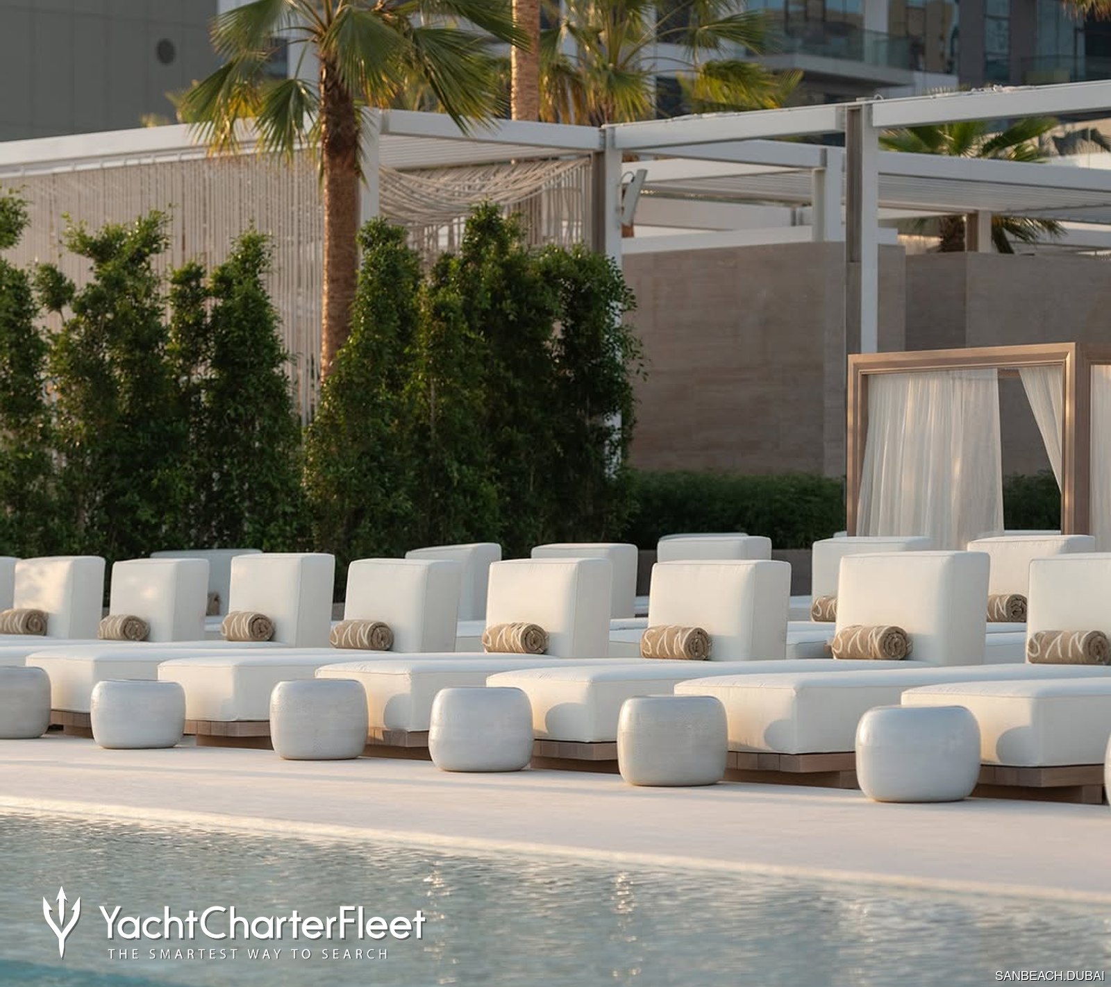 Inviting, tasteful, and incredibly laid back, SĀN Beach is all about bringing a unique energy and embodying the concept of community to create a welcoming retreat-style space for all charter guests. Located on Palm Jumeirah’s West Beach, the story behind the creation of SĀN Beach is just as interesting as its fascinating sculptures, artwork, and social spaces dotted throughout the beach club.