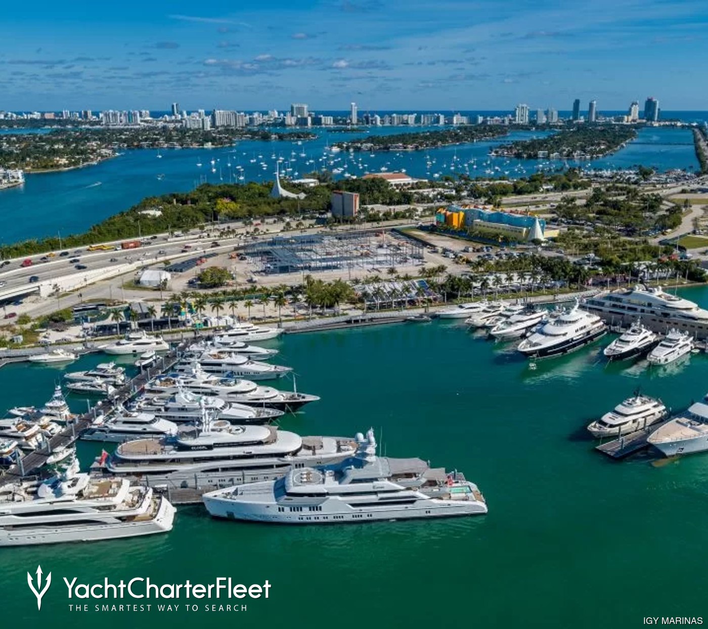 Yacht Haven Grande Miami at Island Gardens is best for superyachts; Miami Beach Marina is ideal for guests seeking quick access to the Convention Center.
