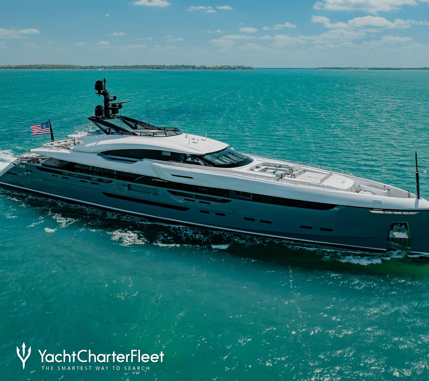 - 206.8ft (63m) luxury yacht charter UTOPIA IV - A sleek, jet-inspired superyacht renowned for speed and striking style.