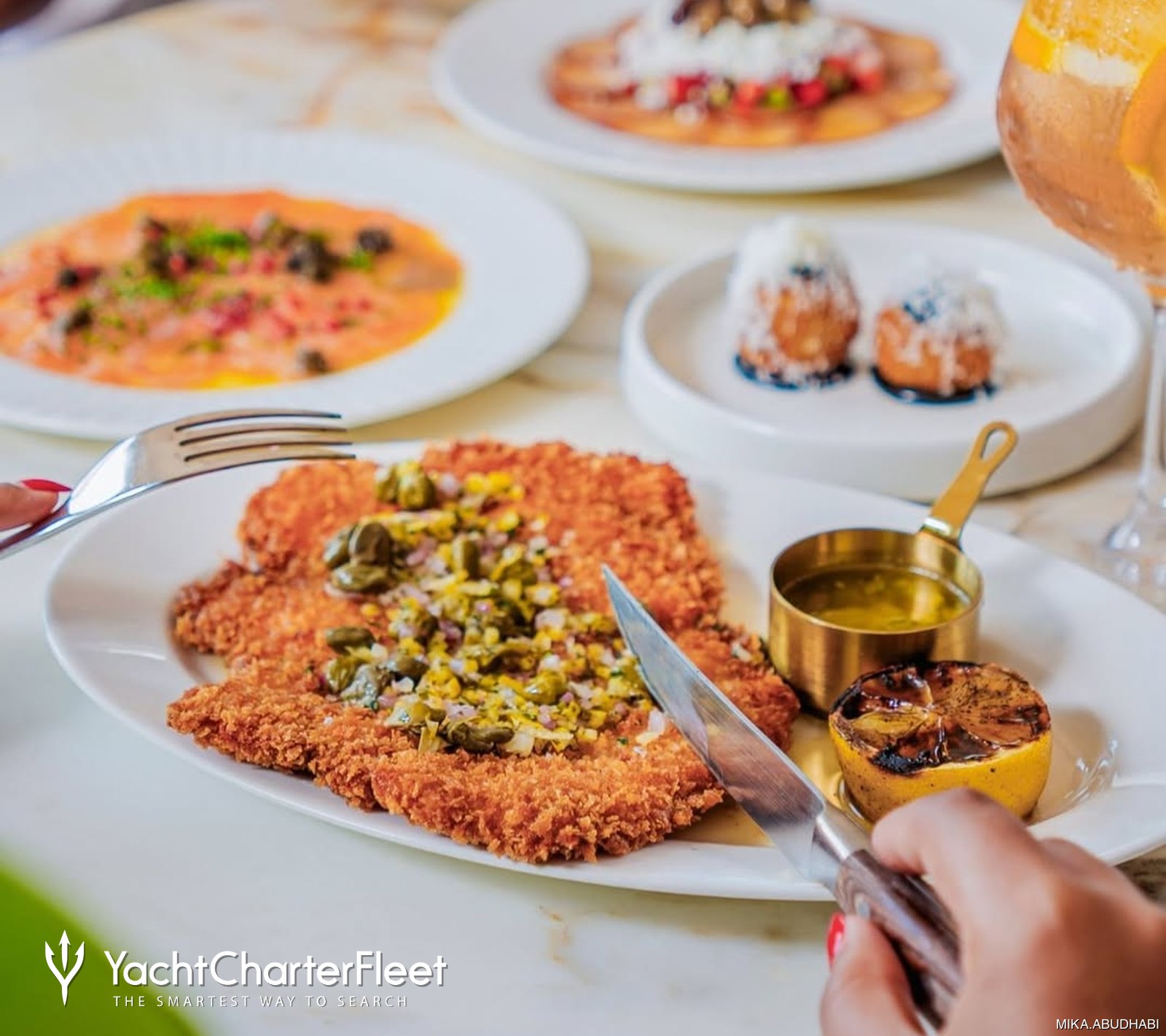 If your superyacht is berthed at Yas Marina during the F1 Abu Dhabi Grand Prix, there are plenty of dining options to suit every palate right on your doorstep.