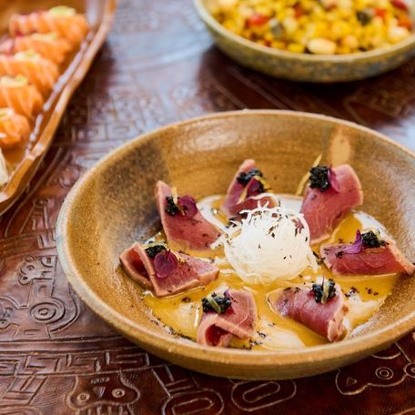 Drawing on his classical training as a sushi chef in Tokyo and his travels in Peru and Argentina, the chef mixes traditional Japanese cooking with spices found on charter routes of South America to concoct signature dishes such as black cod yuzu miso, Chilean sea bass with jalapeno dressing, and king crab tempura with amazu ponzu.