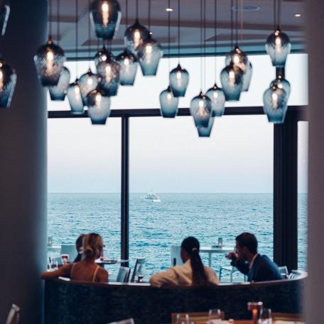 In line with the innovative menu is the cutting-edge, modern dining room, which overlooks an open kitchen, while panoramic sea views of the South of France are to be had outside on the terrace.