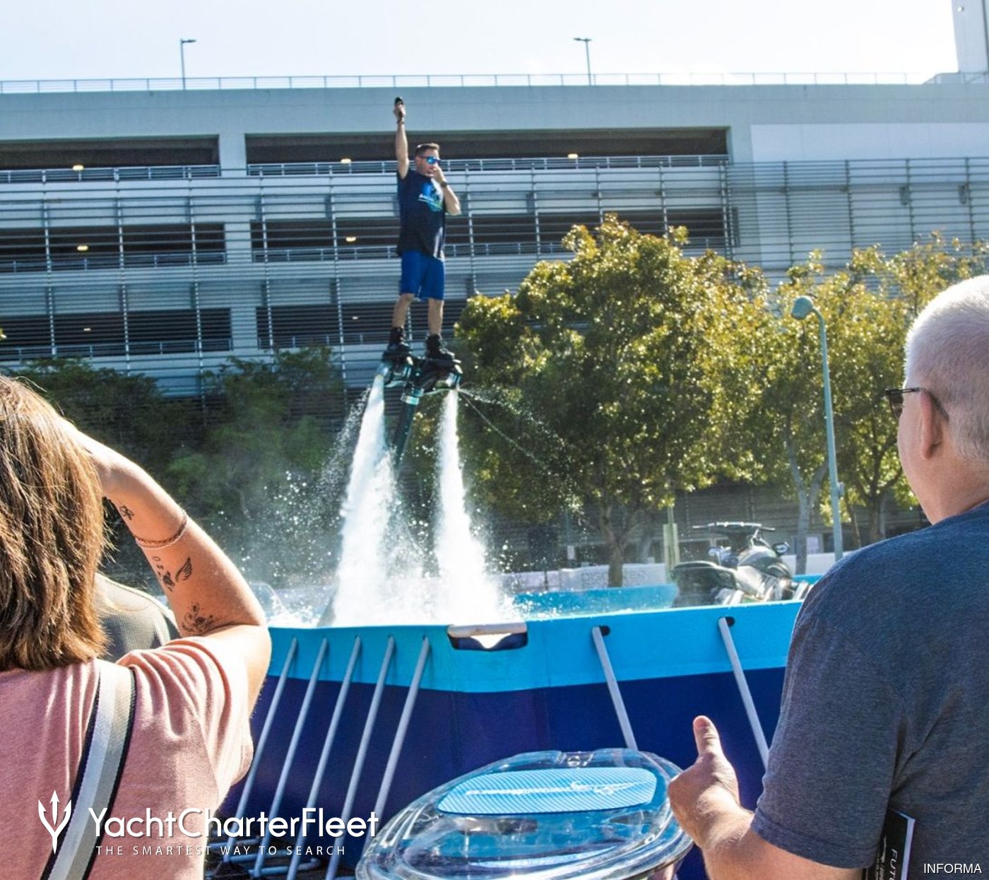 AquaZone - An action-focused demonstration area dedicated to watersports equipment, including flyboards, jetboards, inflatables, and personal watercraft, offering insight into the latest toys found aboard watersports yacht charters.