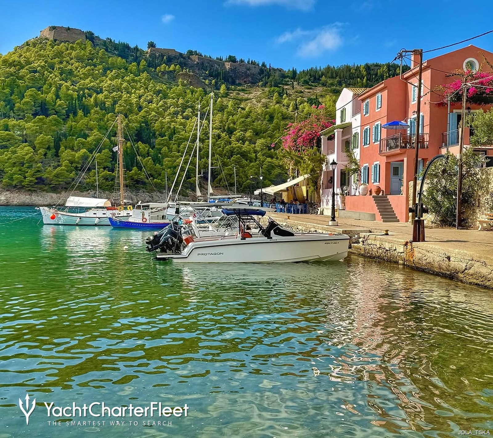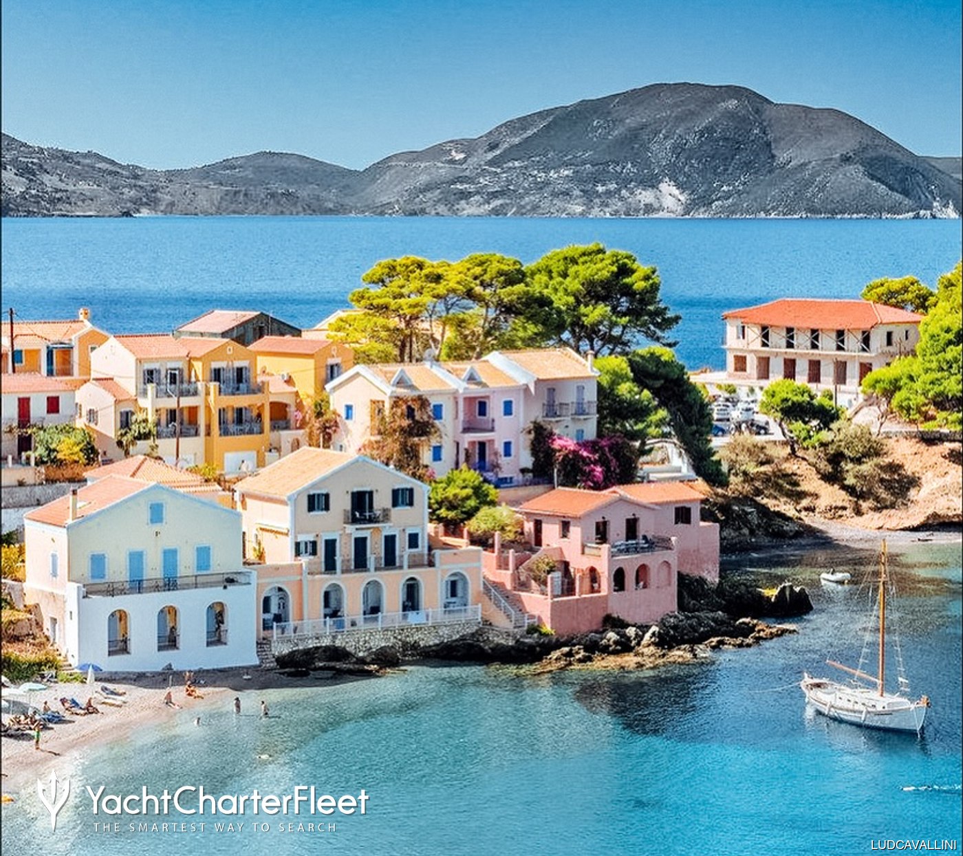 Assos reflects many of the coastal features common across western Greece. These surroundings form a natural extension to a Greece yacht charter itinerary, particularly for those exploring the Ionian Sea.