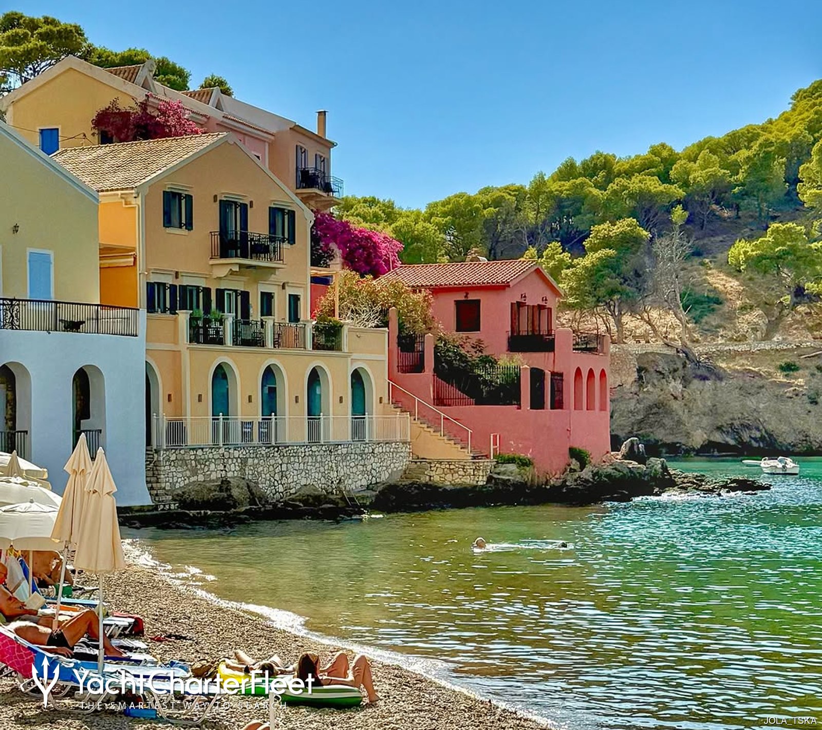 Beyond Assos, the coast includes well‑known beaches and smaller coves. Some visitors choose to explore the wider region as part of an Ionian Islands yacht charter, using Assos as a peaceful pause between longer coastal routes.