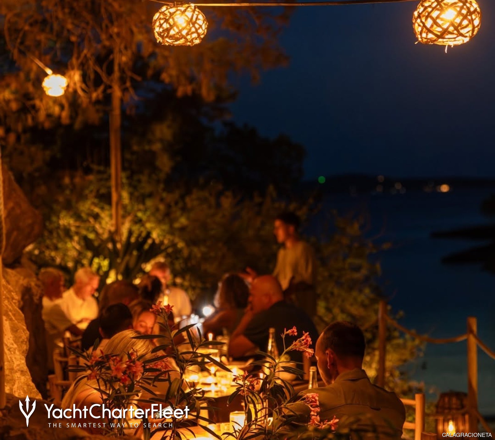 Guests can enjoy lunch in the shade of pine trees or dinner as the sun sets over the sea. The atmosphere is calm and comfortable - perfectly in tune with the laid-back pace that defines a Balearic Islands yacht charter experience.