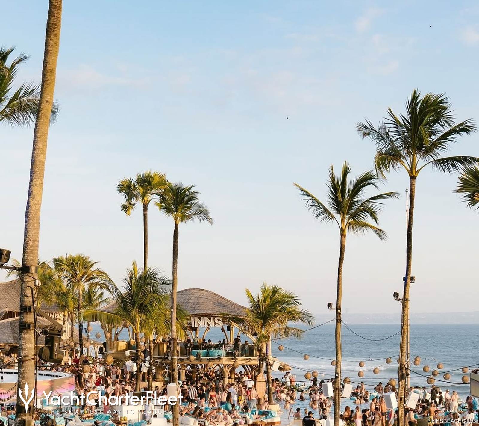 For those wanting a more private setting, the club offers shaded cabanas and indoor spaces with air conditioning. The stylish layout and design elements blend modern luxury with the laid-back vibe of a beachfront club. The atmosphere balances relaxation and sophistication, perfect for guests who want to unwind in style during a yacht charter stop in Bali.
