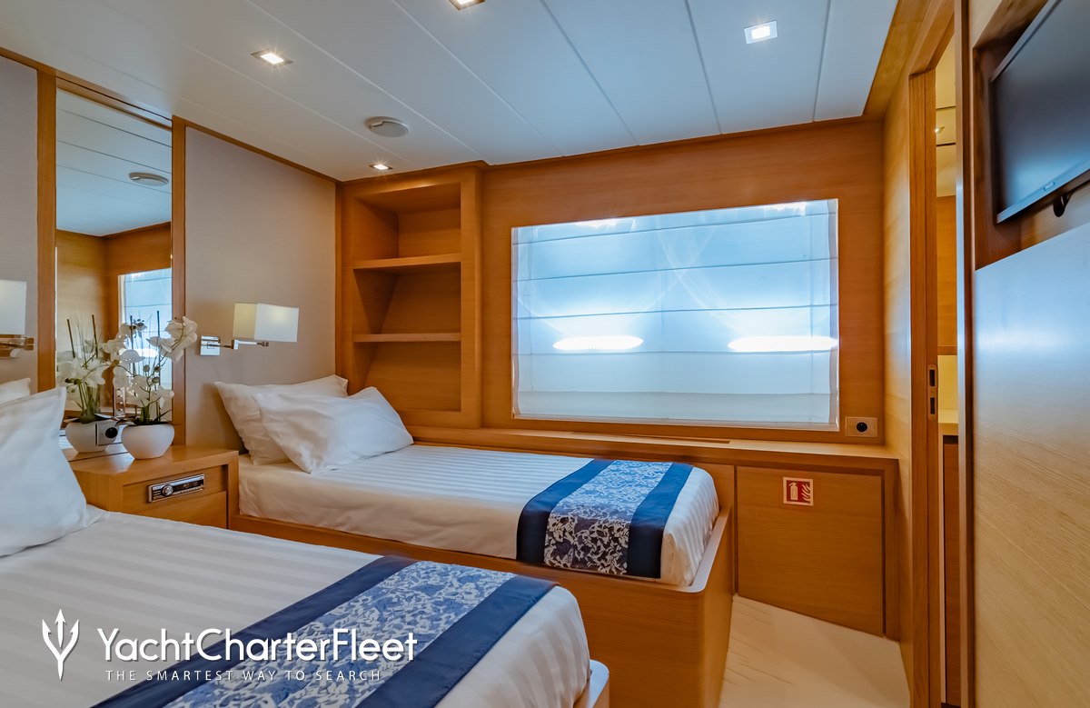 Hummingbird has been designed to comfortably accommodate up to 8 guests in 4 suites comprising one VIP cabin. She is also capable of carrying up to 4 crew onboard to ensure a relaxed luxury yacht experience.