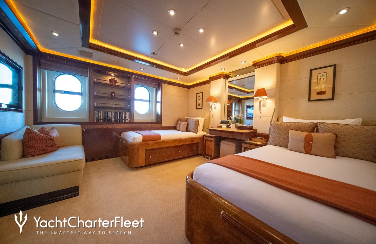 Due to her size, Lady Maja I can dedicate an entire deck to the master suite without compromising on space.