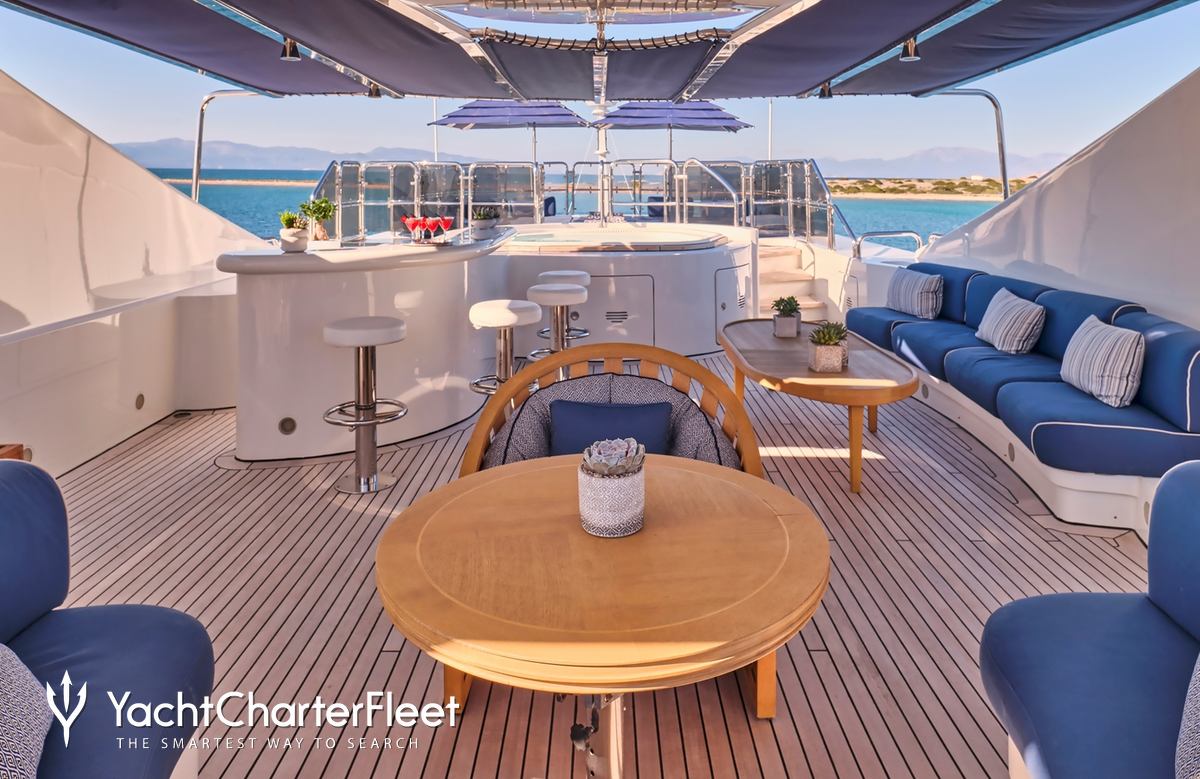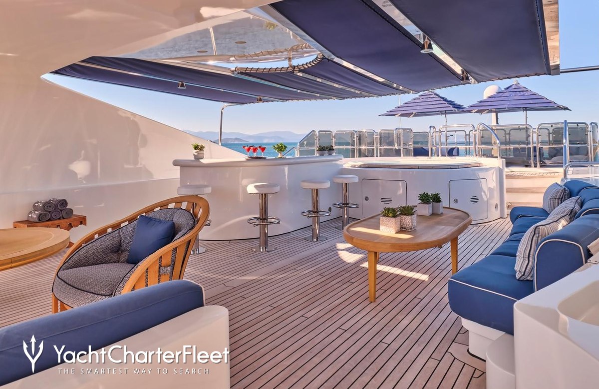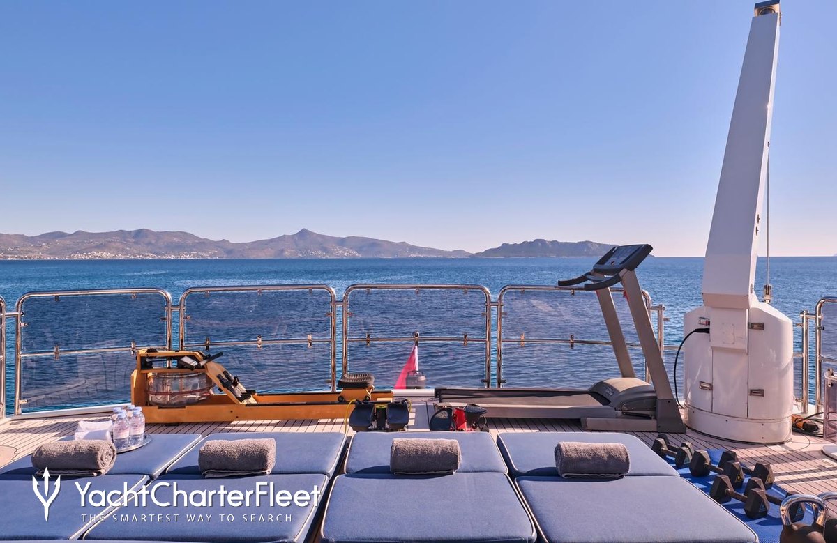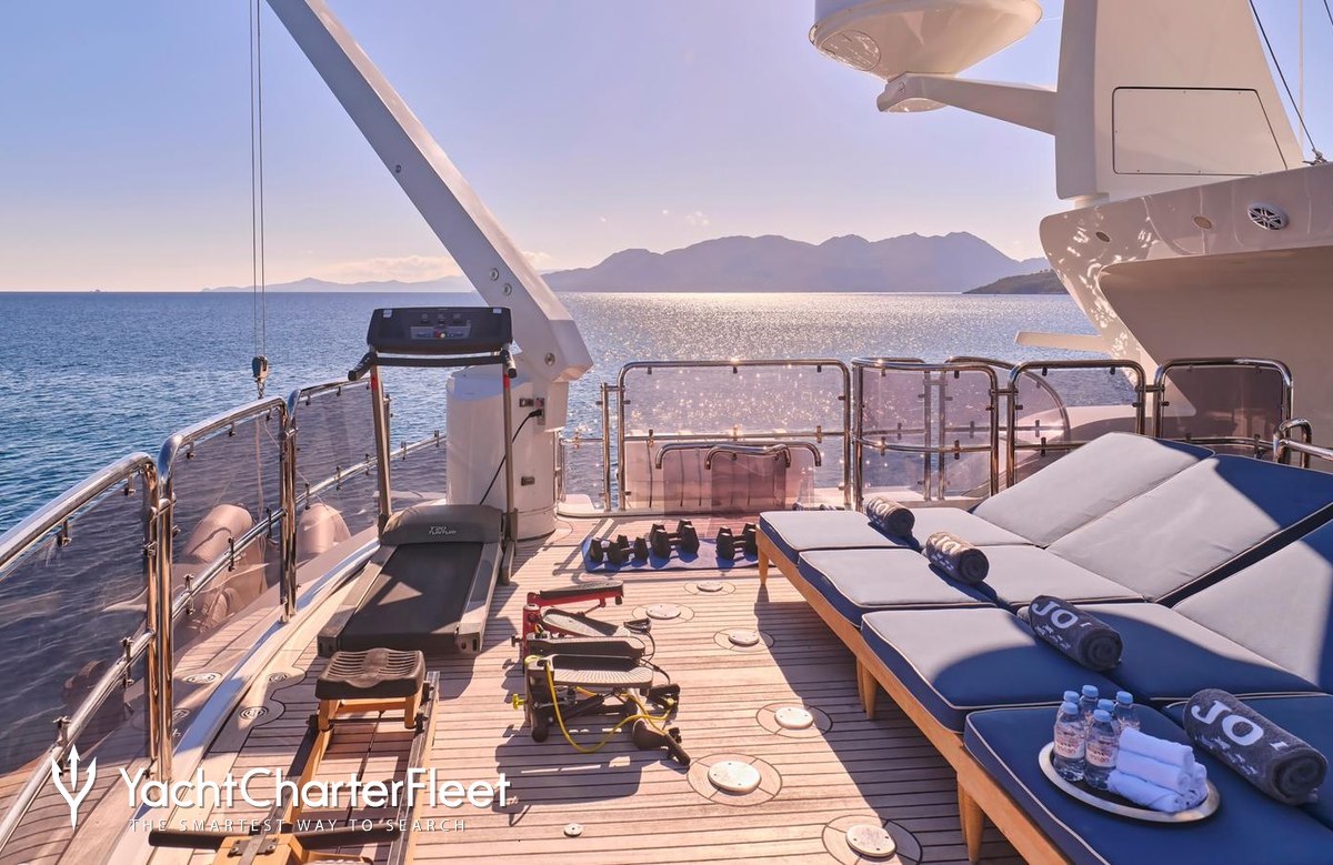 Keeping comfortable and entertained on Jo I is easy thanks to the available amenities, notably a dancefloor where you and your guests can celebrate in style. Head to the beach club and take advantage of indoor-outdoor living and entertaining or retreat to the deck jacuzzi and soak up the scenery.