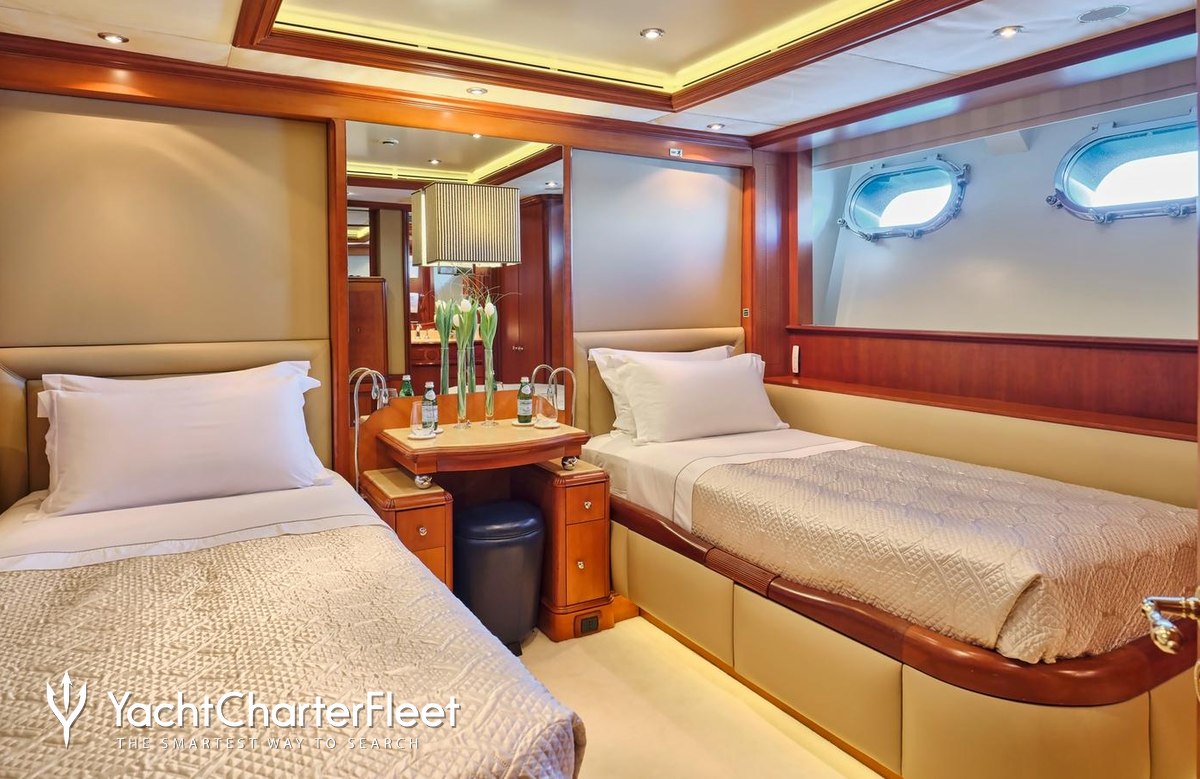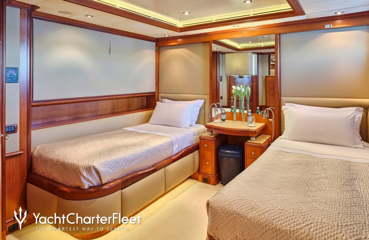 Built in 2004, Jo I offers guest accommodation for up to 12 guests in 6 suites comprising a master suite, one VIP cabin, two double cabins and two twin cabins. She is also capable of carrying up to 11 crew onboard to ensure a relaxed luxury yacht charter experience.