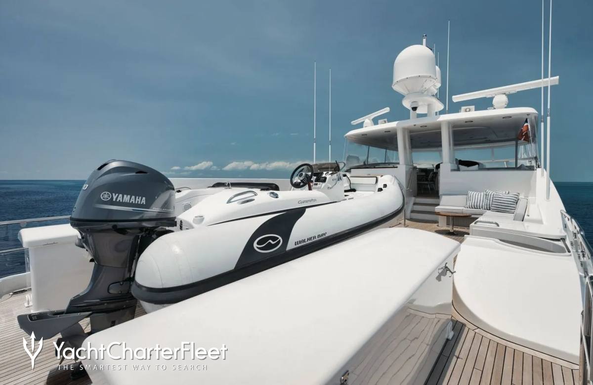 Onboard Legacy has a range of toys and accessories to keep you and your guests entertained on the water throughout your stay. Principle among these are towable toys offering fun and adventure. Another excellent feature are two SEABOBs, offering a truly remarkable experience that lets you skim along the surface or swim with the fishes quietly and safely. In addition there are two wakeboards so guests can show off at speed. If that isn't enough Legacy also features fishing equipment and snorkelling equipment. When it comes to Tenders, Legacy has you covered - with two tenders, including a 11.89m/39' Yellowfin Chase Tender.