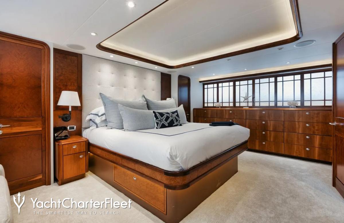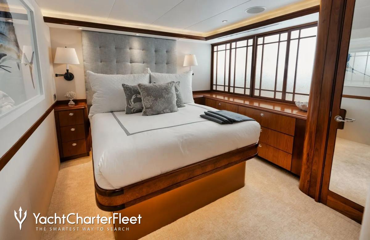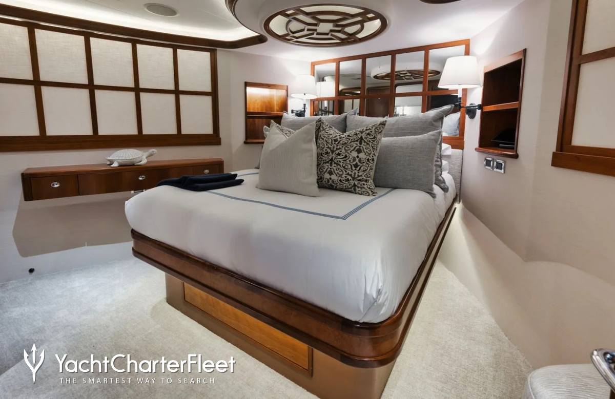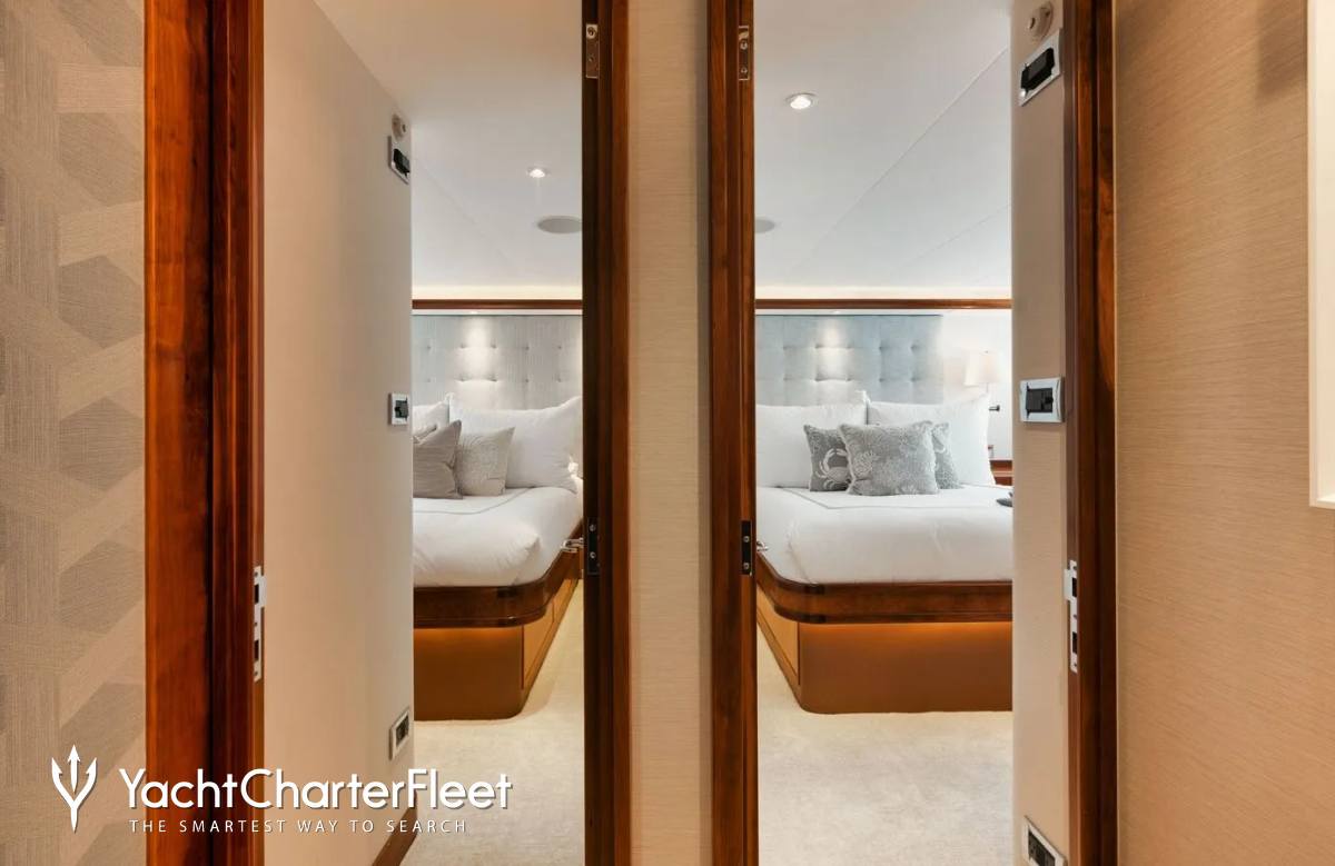 Built in 2003, Legacy offers guest accommodation for up to 8 guests in 4 suites comprising a master suite, one VIP cabin, one double cabin and two twin cabins. There are 4 beds in total, including 1 king and 3 queen. She is also capable of carrying up to 5 crew onboard to ensure a relaxed luxury yacht charter experience.