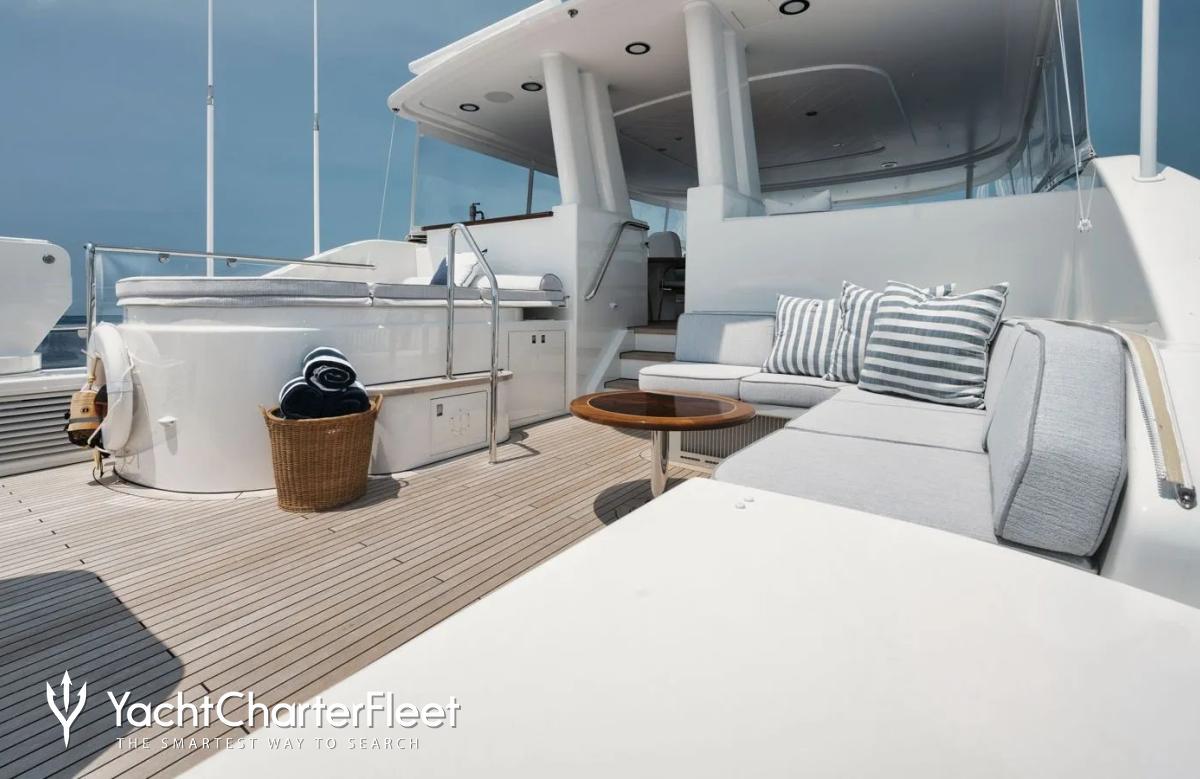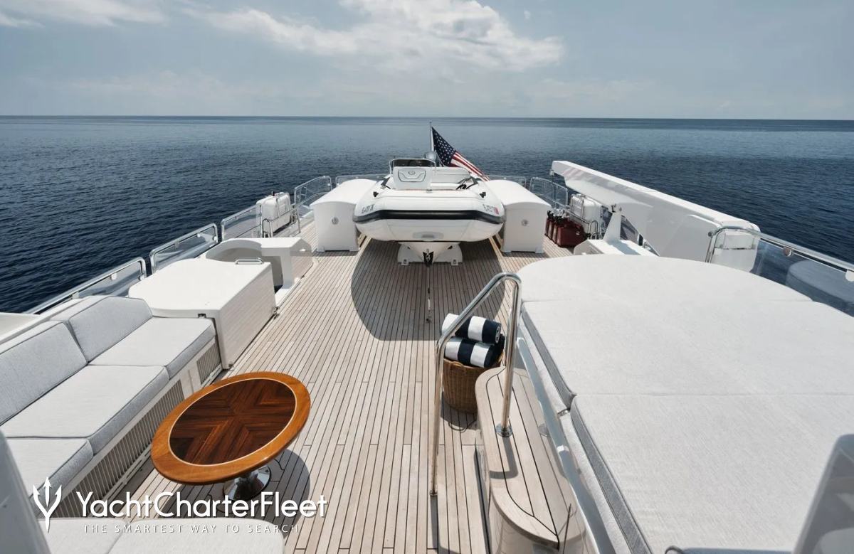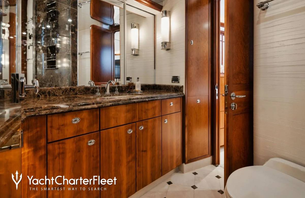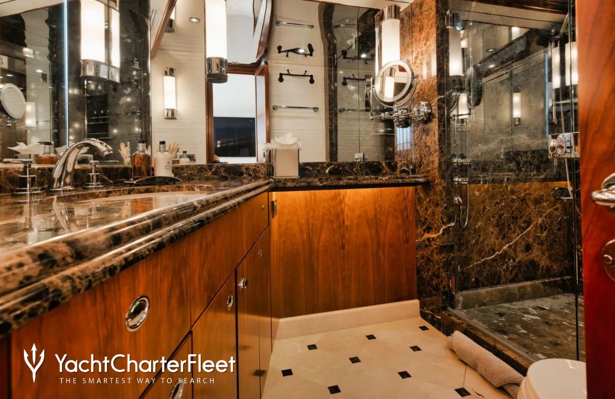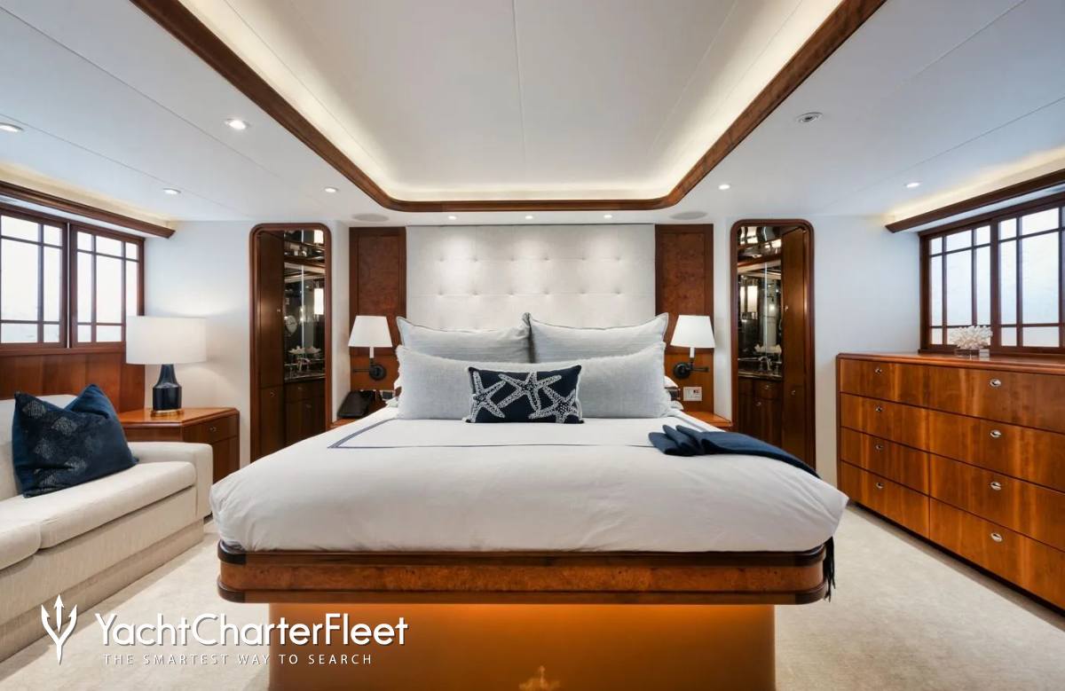 Built in 2003, Legacy offers guest accommodation for up to 8 guests in 4 suites comprising a master suite, one VIP cabin, one double cabin and two twin cabins. There are 4 beds in total, including 1 king and 3 queen. She is also capable of carrying up to 5 crew onboard to ensure a relaxed luxury yacht charter experience.