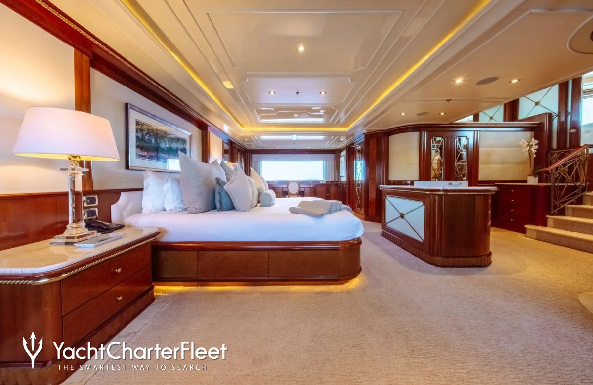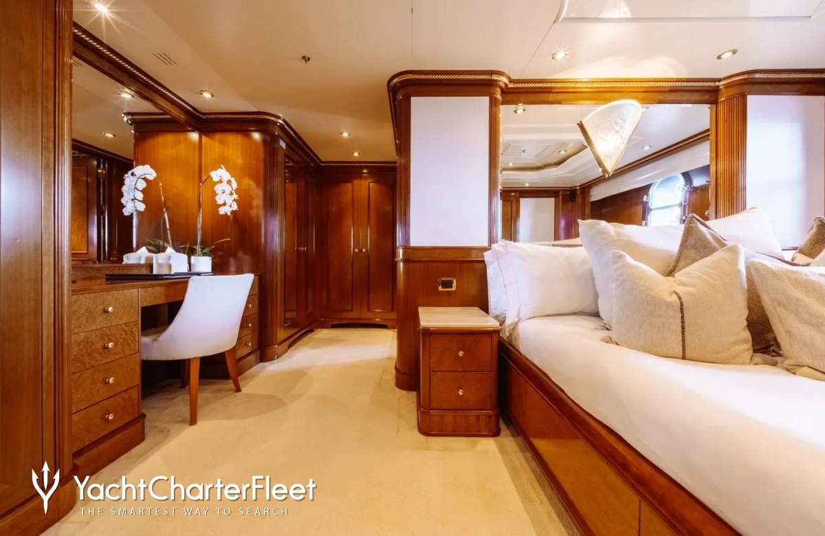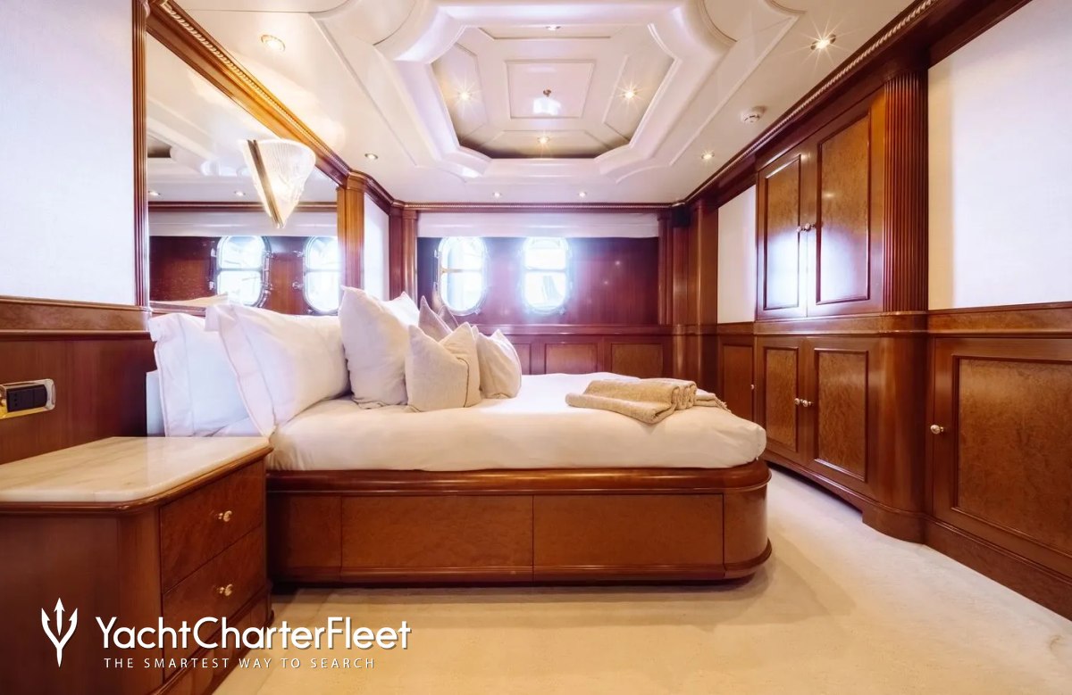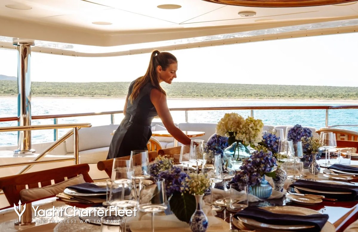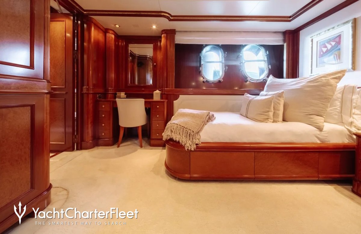 Next Chapter is great for families thanks to her child-friendly setup. Built in 2003, She offers guest accommodation for up to 12 guests with a layout comprising a master suite, one VIP cabin, two double cabins and two twin cabins. There are 8 beds in total, including 1 king, 3 queen, 4 singles and 1 pullman. She is also capable of carrying up to 14 crew onboard to ensure a relaxed luxury yacht charter experience.