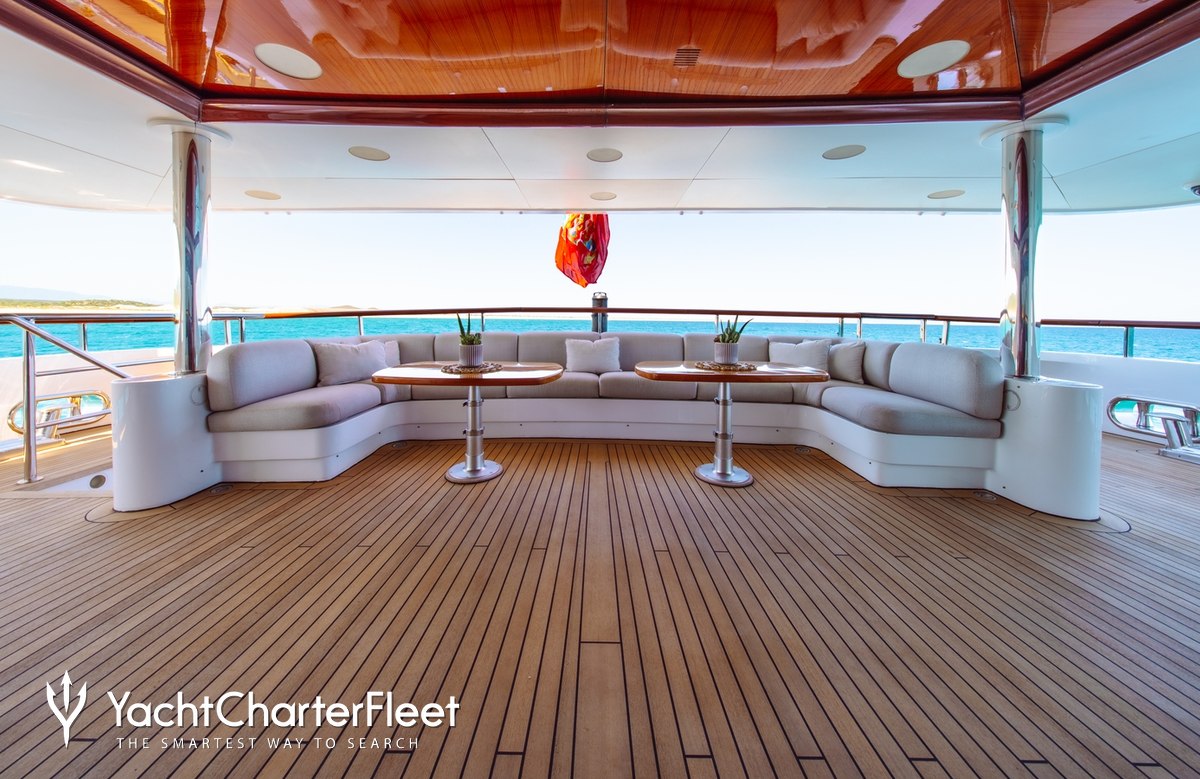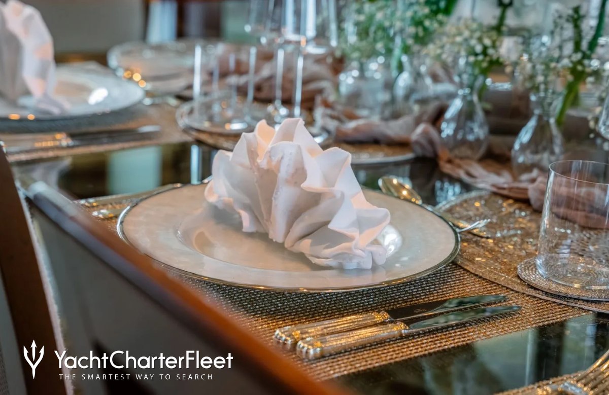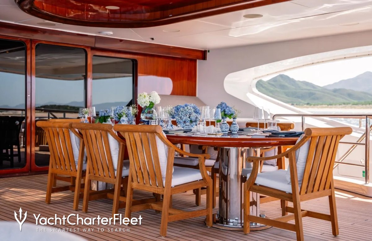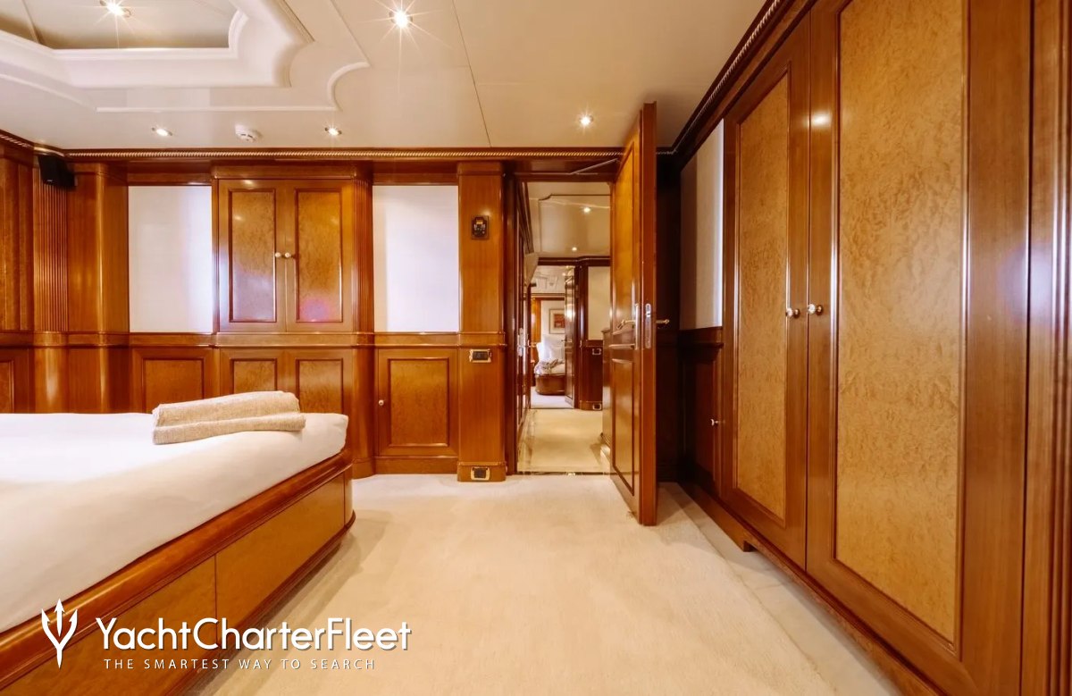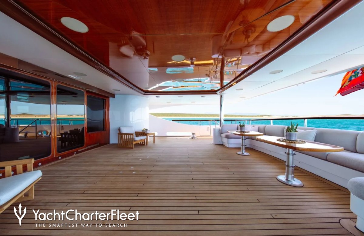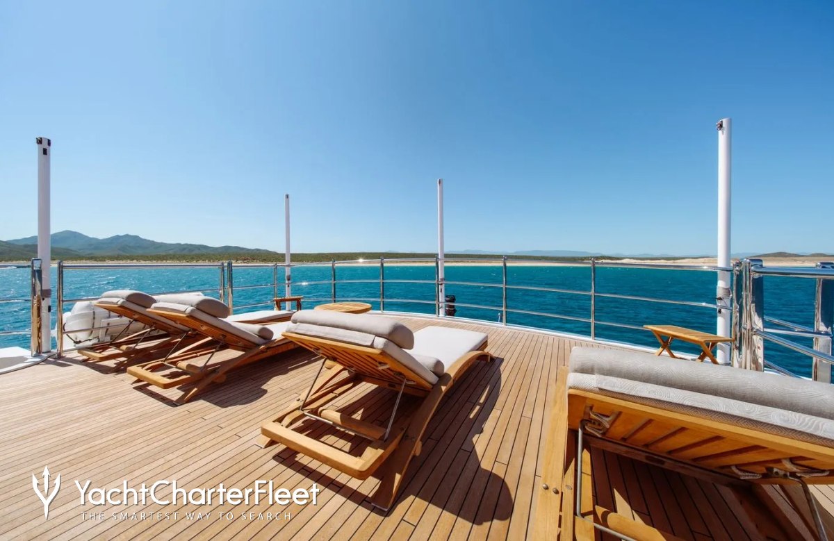 Next Chapter is great for families thanks to her child-friendly setup. Built in 2003, She offers guest accommodation for up to 12 guests with a layout comprising a master suite, one VIP cabin, two double cabins and two twin cabins. There are 8 beds in total, including 1 king, 3 queen, 4 singles and 1 pullman. She is also capable of carrying up to 14 crew onboard to ensure a relaxed luxury yacht charter experience.