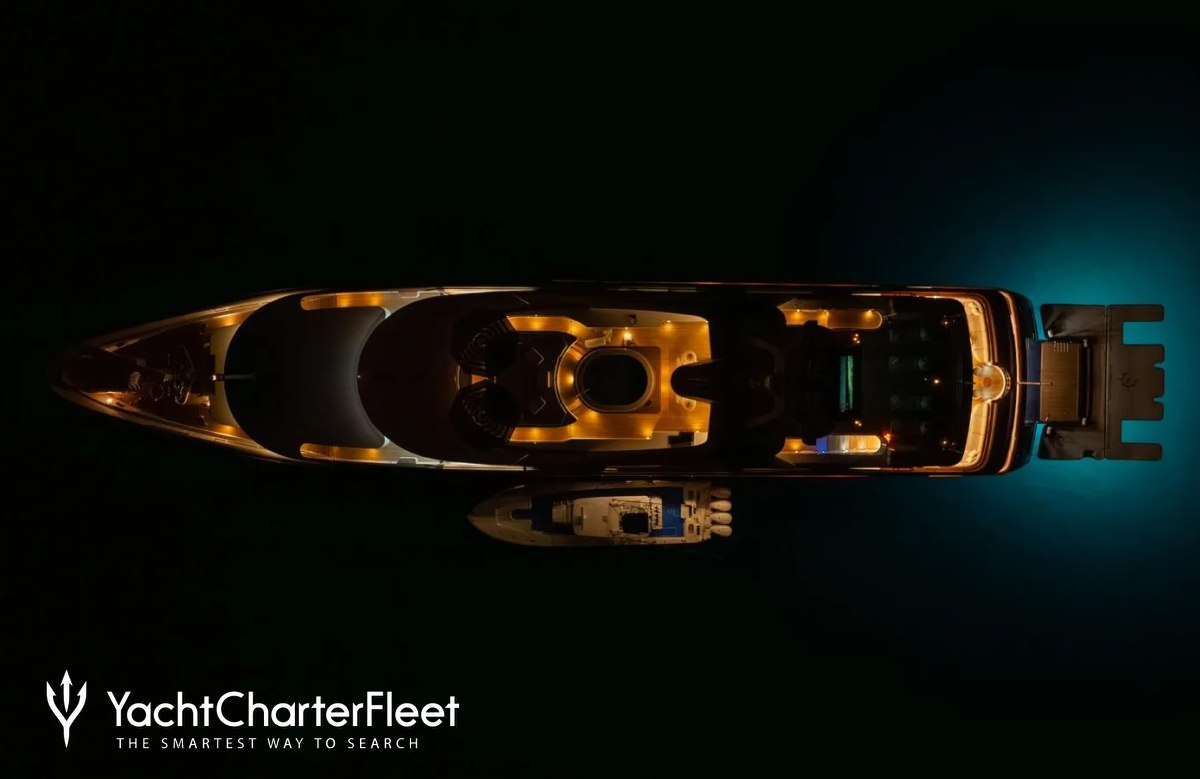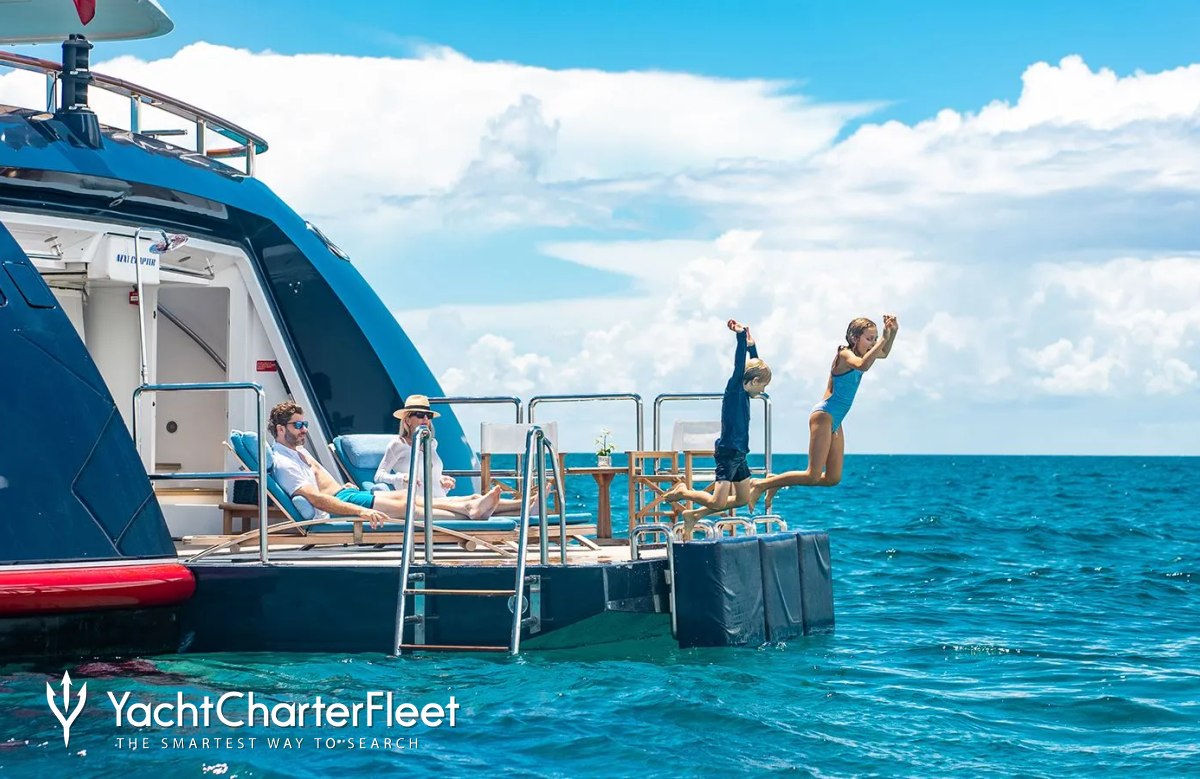 From bow to stern, Next Chapter is brimming with an fantastic array of social and dining areas, both inside and out, making her the ideal yacht for relaxing and entertaining whilst on charter. Her features include beach club and gym.