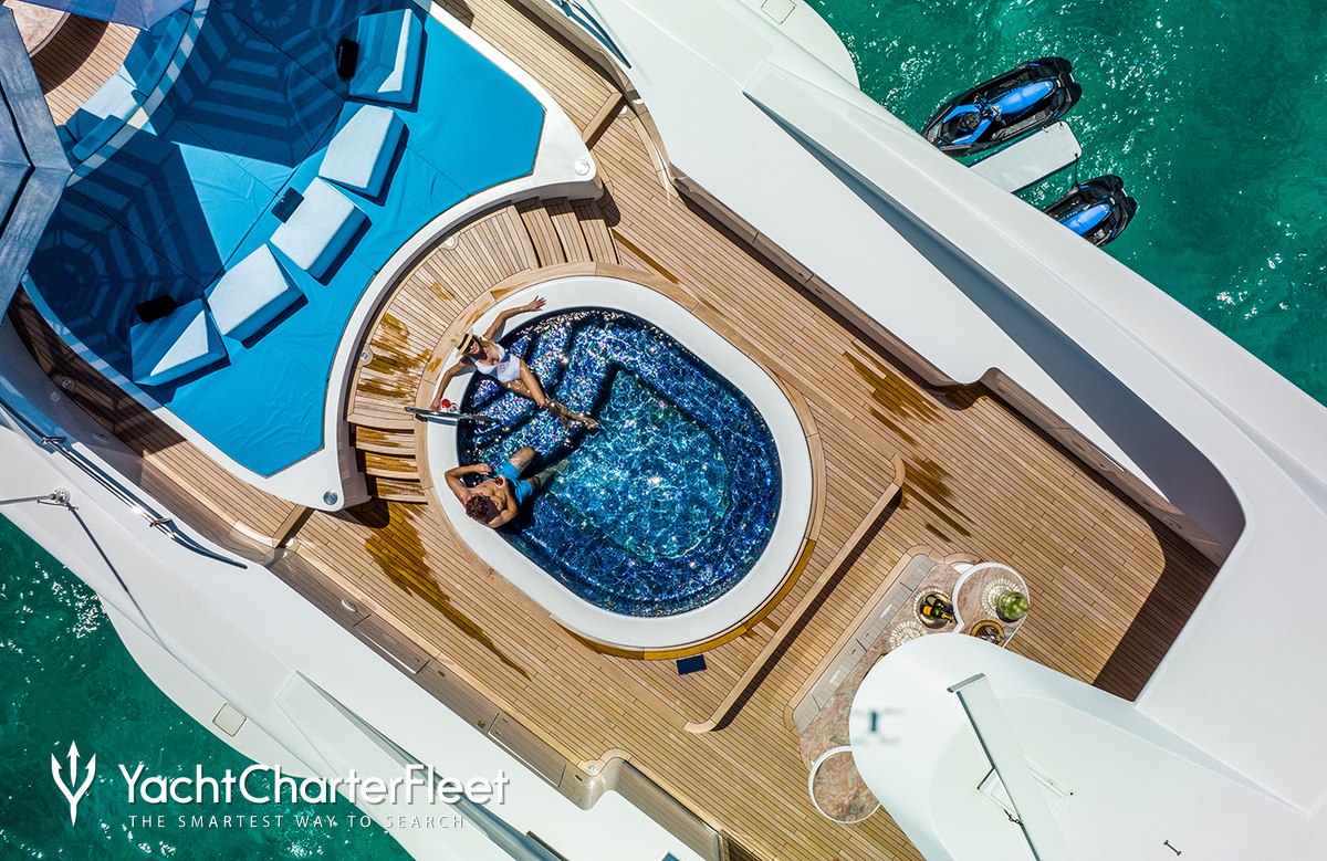 On your charter, you'll find plenty to keep you busy and entertained such as a beach club for you to relax on the edge of the water. Maintain your fitness routine and work out in the well-equipped gym and soak up the bubbles in style in the deck jacuzzi.