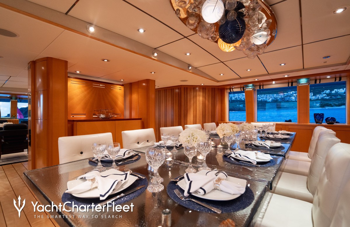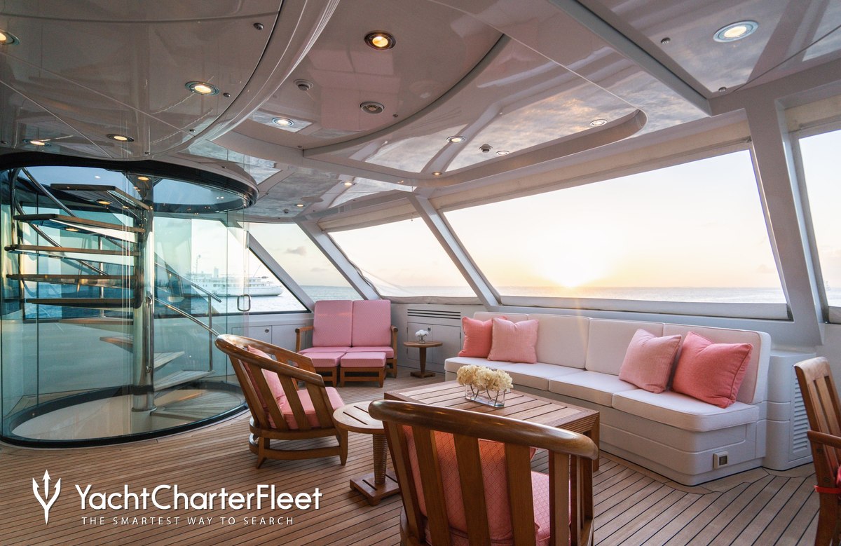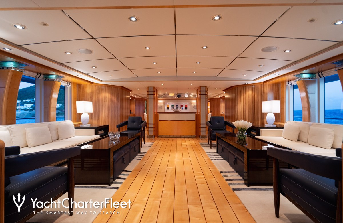 Claudette Bonville Associates was given the task to lighten and change the feel of the yacht's interior and outdoor spaces to a contemporary, crisp, tailored design during her refit.