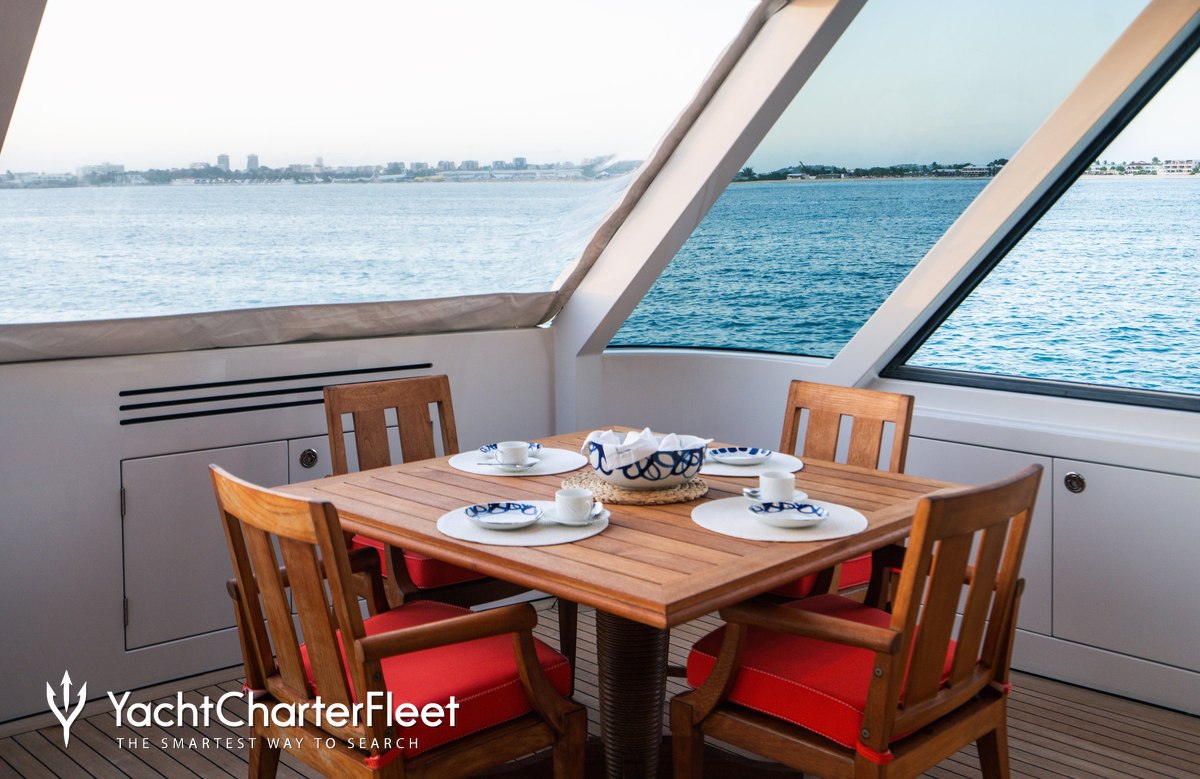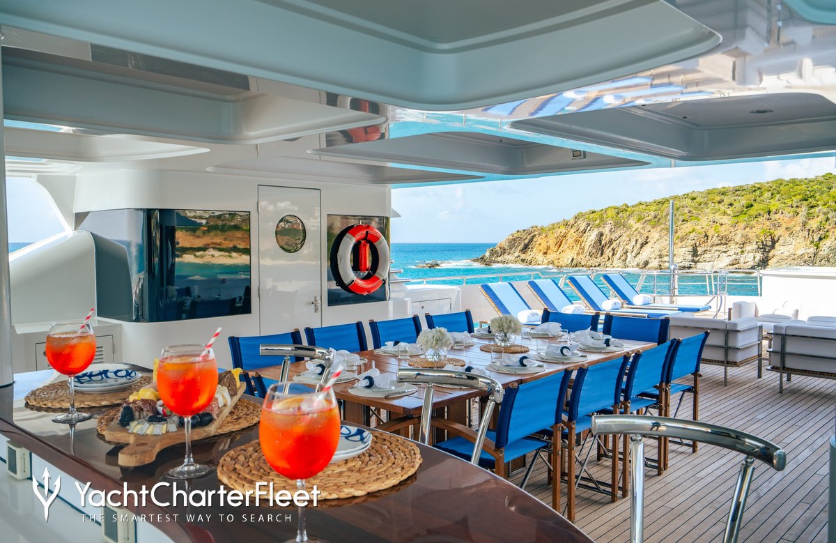 Keeping comfortable and entertained on Victoria Del Mar is easy thanks to the available amenities, particularly a dedicated library, where you can unwind in seclusion. Guests love watching a movie, or catching up on their favourite show or sporting event whenever they wish in the comfortable movie theatre. For the ultimate relaxation experience, she plays host to a luxury spa or elsewhere, a gym with all the latest equipment is available for a good work out. Retreat to the deck jacuzzi and soak up the scenery.