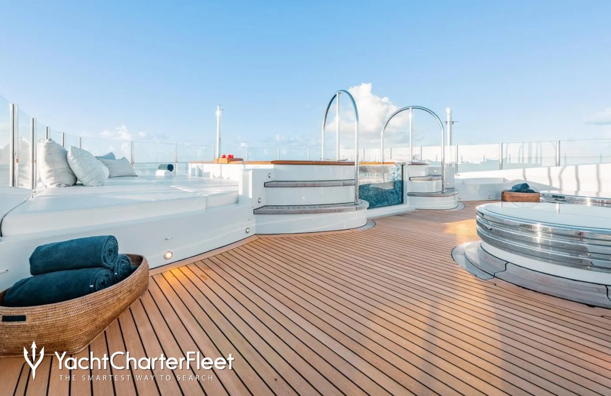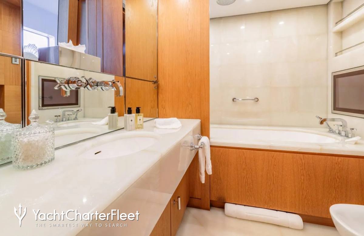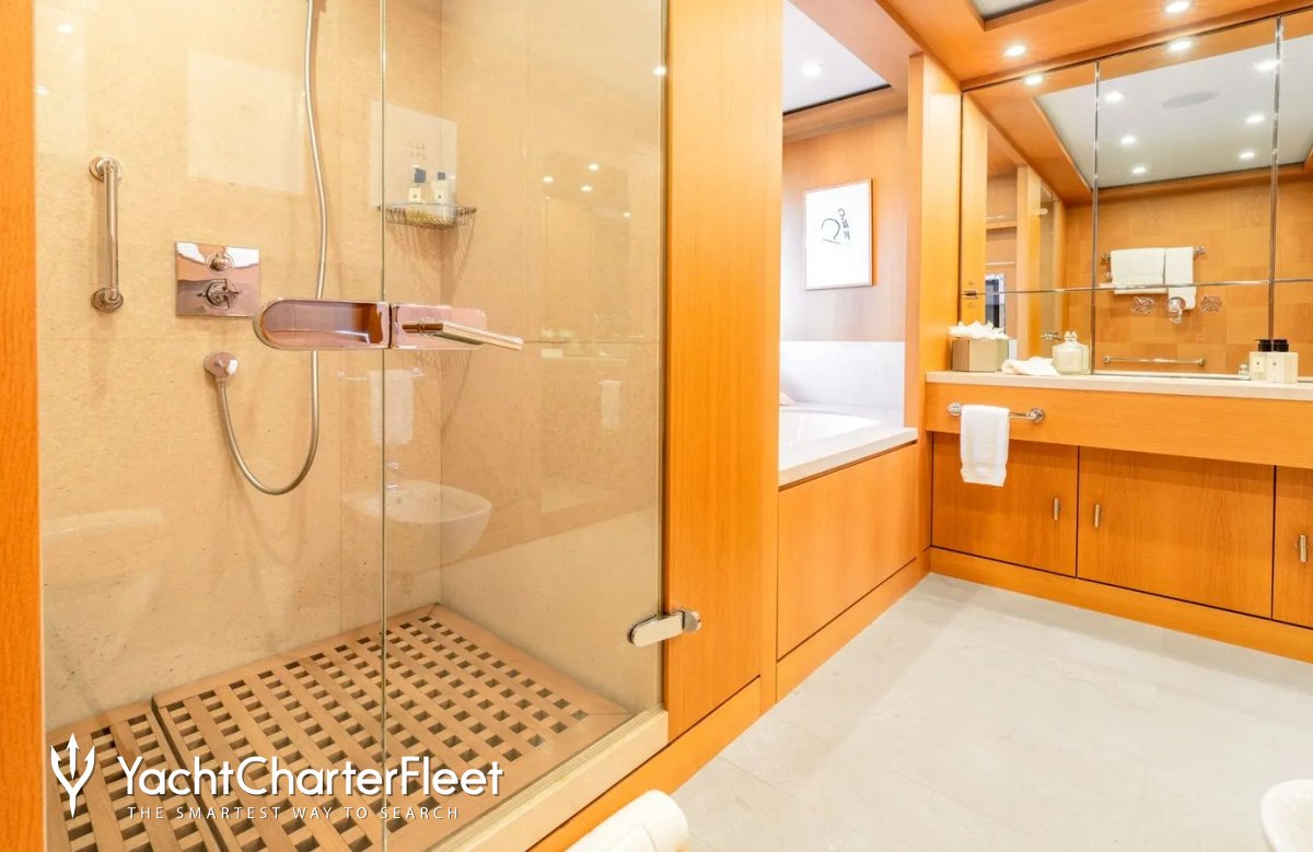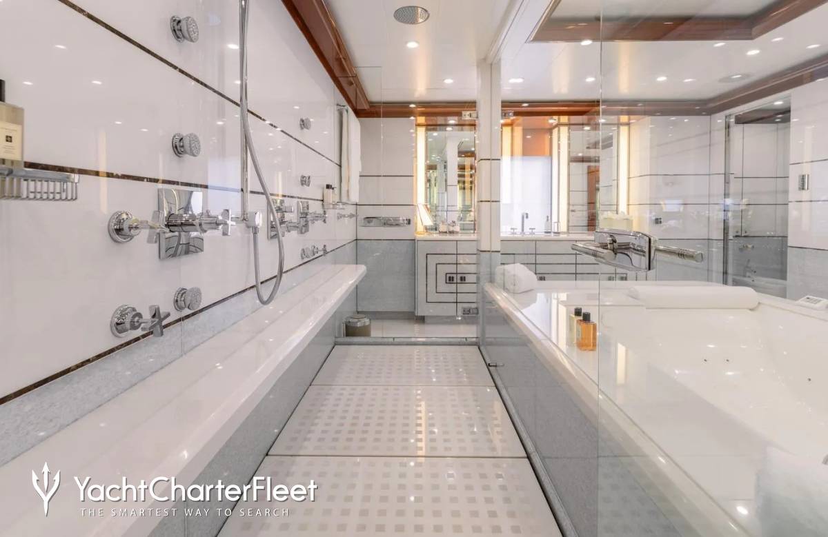 Whatever your activities on your charter, you'll find some impressive features are seamlessly integrated to help you, particularly an elevator, making any part of the yacht quickly and easily accessible. Soak up the atmosphere after dark with dramatic underwater lights or whether you want to work, use social media or stream movies on board this yacht, you can with Wi-Fi connectivity. You can stay comfortable on board whatever the weather, with air conditioning during your charter.