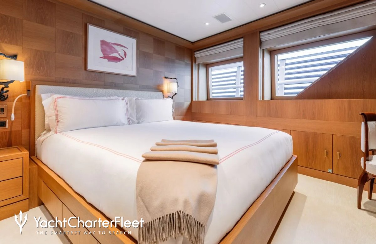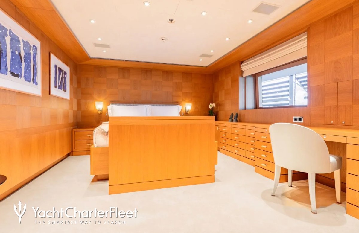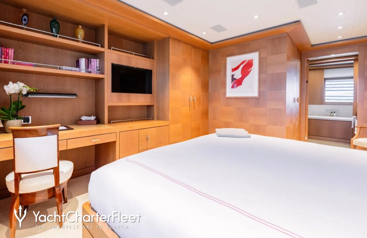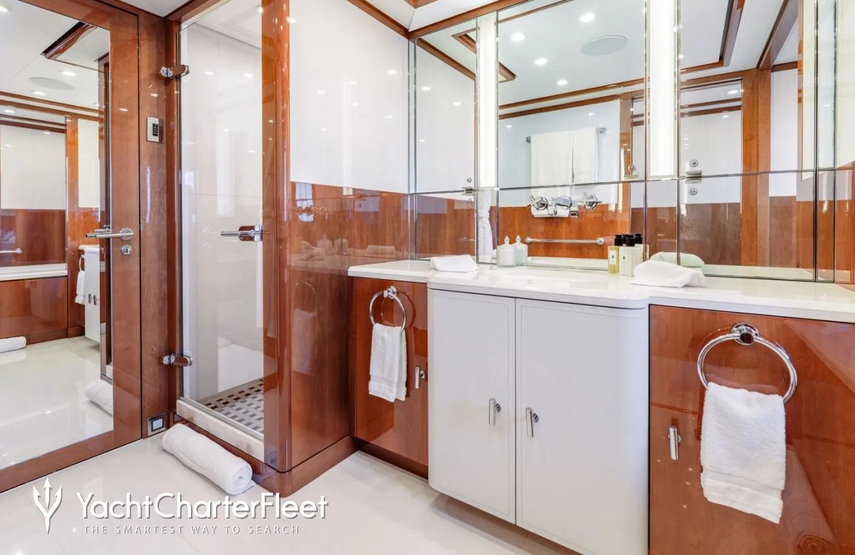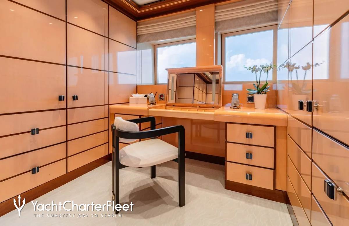 Whatever your activities on your charter, you'll find some impressive features are seamlessly integrated to help you, particularly an elevator, making any part of the yacht quickly and easily accessible. Soak up the atmosphere after dark with dramatic underwater lights or whether you want to work, use social media or stream movies on board this yacht, you can with Wi-Fi connectivity. You can stay comfortable on board whatever the weather, with air conditioning during your charter.