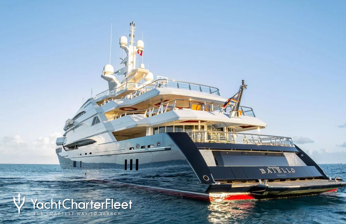 At 80m/262'6", iconic charter yacht Batello features a compelling line-up of living areas and modern amenities and abounds in luxury and comfort