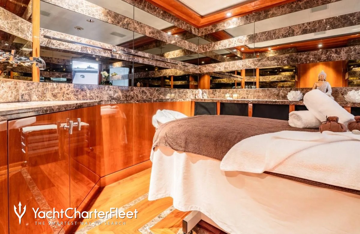 Built in 2007, Batello is custom-built for world-class luxury yacht chartering, offering a wealth of spacious living areas and fabulous amenities, you'll be in for a treat from the moment you step on board. Her features include a beauty salon, spa, elevator, underwater lights, beach club and gym.