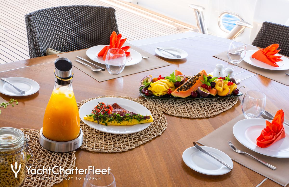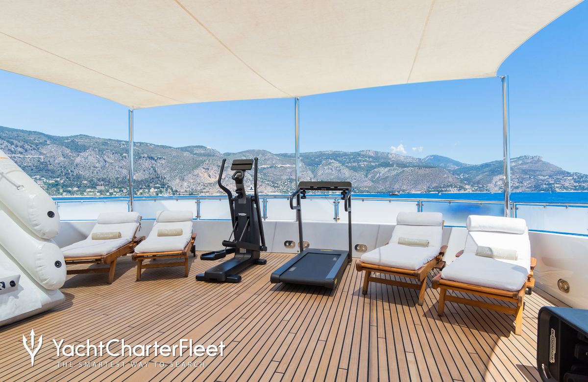 A charter on Shalawaty is comfortable and convenient thanks to the provided amenities, particularly a gym with all the latest equipment to maintain your fitness routine. Sit back with a glass of champagne in the deck jacuzzi.