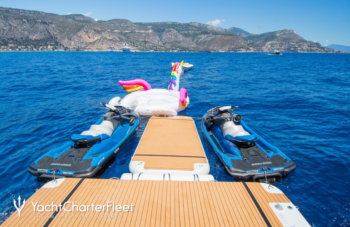 Equipped with a selection of water-toys Shalawaty lets you and your guests turn the Mediterranean into your own private playground. Guests can feel the wind in their hair and jump the waves on one of the two SeaDoo 4TEC WaveRunners. Additionally, there are towable toys offering fun and adventure. In addition there are waterskis that are hugely entertaining whether you are a beginner or a seasoned pro. If that isn't enough Shalawaty also features a seabob, fishing equipment and snorkelling equipment. Shalawaty features two tenders, but leading the pack is a 9.14m/30' Zar Tender to transport you in style.