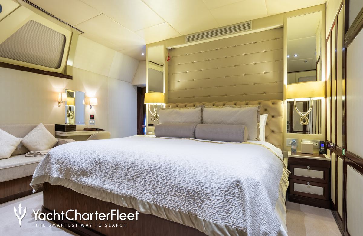 Families will particularly love Shalawaty thanks to her child-friendly setup. She offers guest accommodation for up to 12 guests with a layout comprising a master suite and one VIP cabin. There are 9 beds in total, including 3 king, 1 queen, 4 singles and 1 pullman. She is also capable of carrying up to 12 crew onboard to ensure a relaxed luxury yacht charter experience.