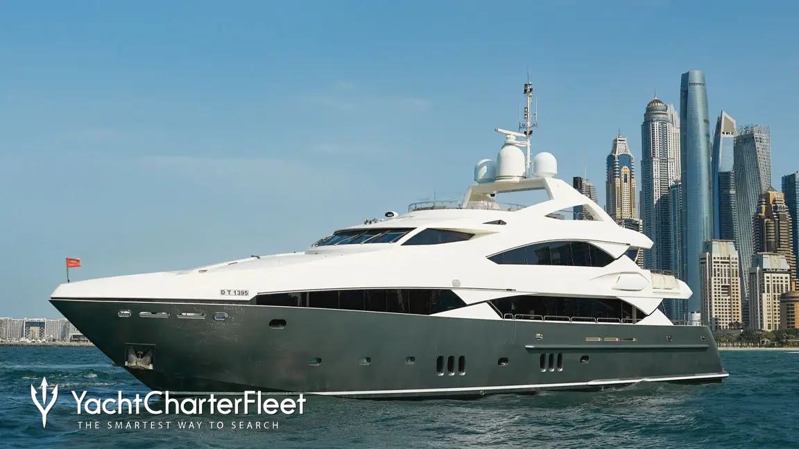 The 37m/121'5" motor yacht 'Encore' by the British shipyard Sunseeker offers flexible accommodation for up to 10 guests in 5 cabins and features interior styling by British designer Sunseeker.