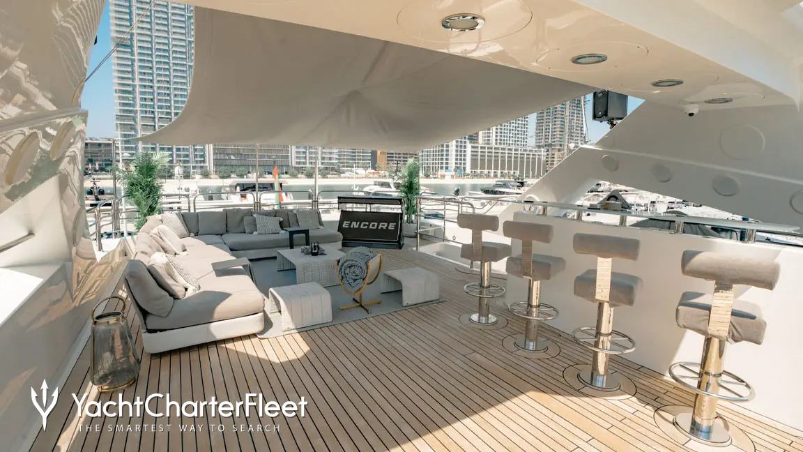 Motor yacht Encore has an array of charter-focused amenities to ensure a memorable experience onboard whatever the destination.