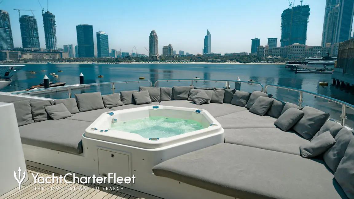 On your charter, you'll find plenty to keep you busy and entertained including a deck jacuzzi, perfect to enjoy the scenery with your favourite drink in hand.