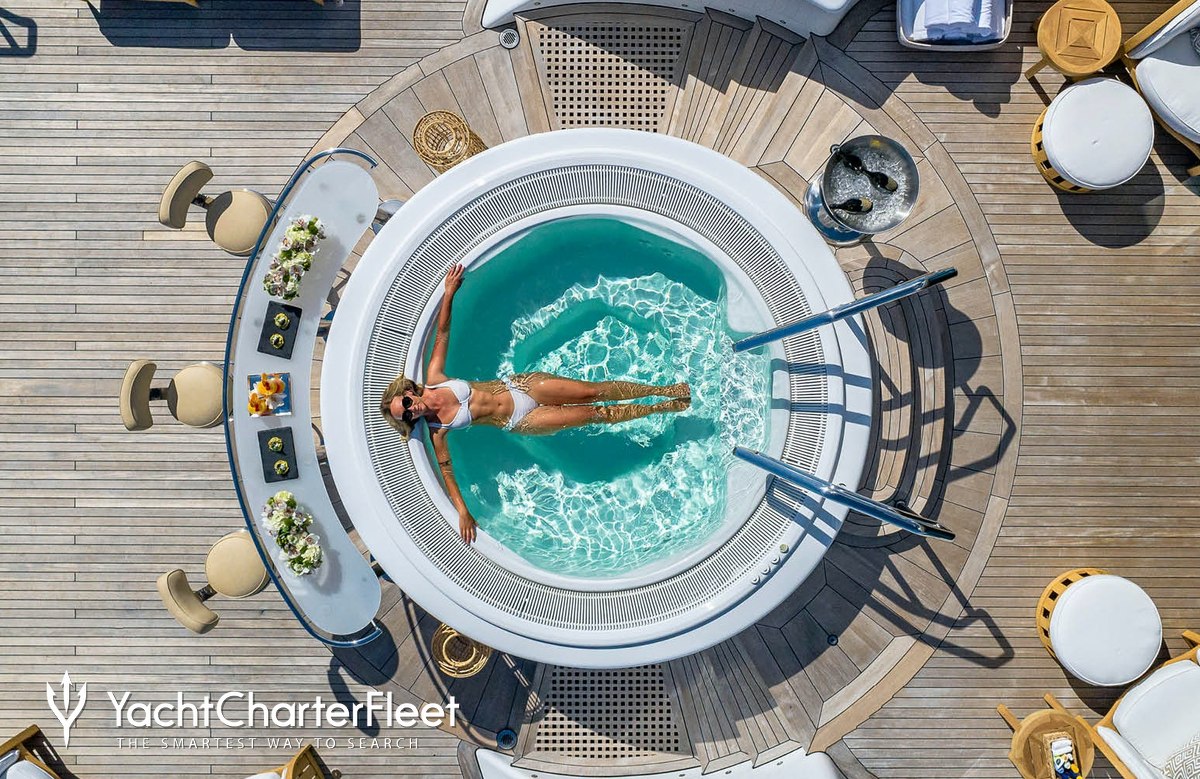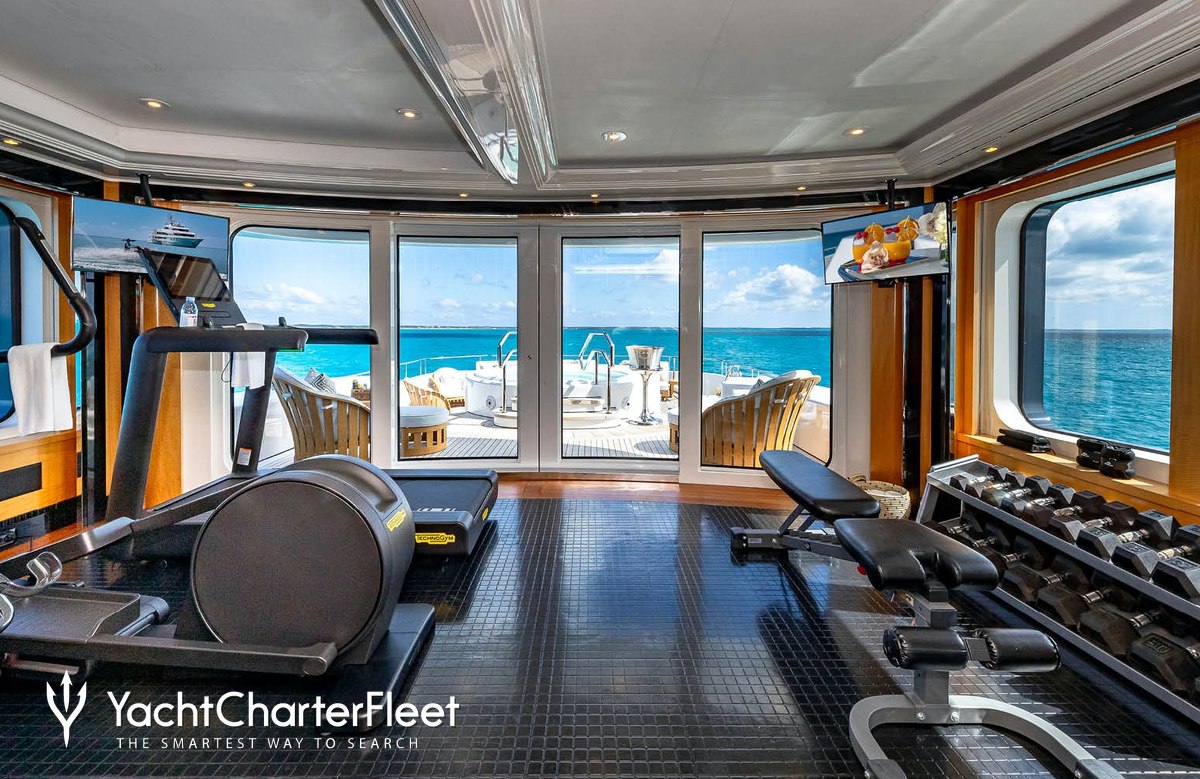 A charter on Lunaris is comfortable and convenient thanks to the provided amenities including a gym with all the latest equipment to maintain your fitness routine. Sit back with a glass of champagne in the deck jacuzzi.