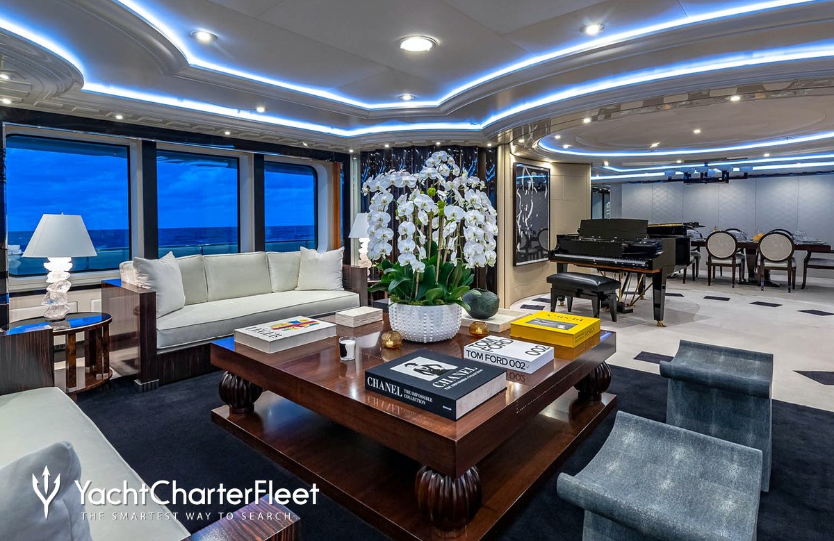 The 61.26m/201' 'Lunaris' motor yacht built by the German shipyard Lurssen is available for charter for up to 12 guests in 6 cabins. This yacht features interior styling by British designer Winch Design.