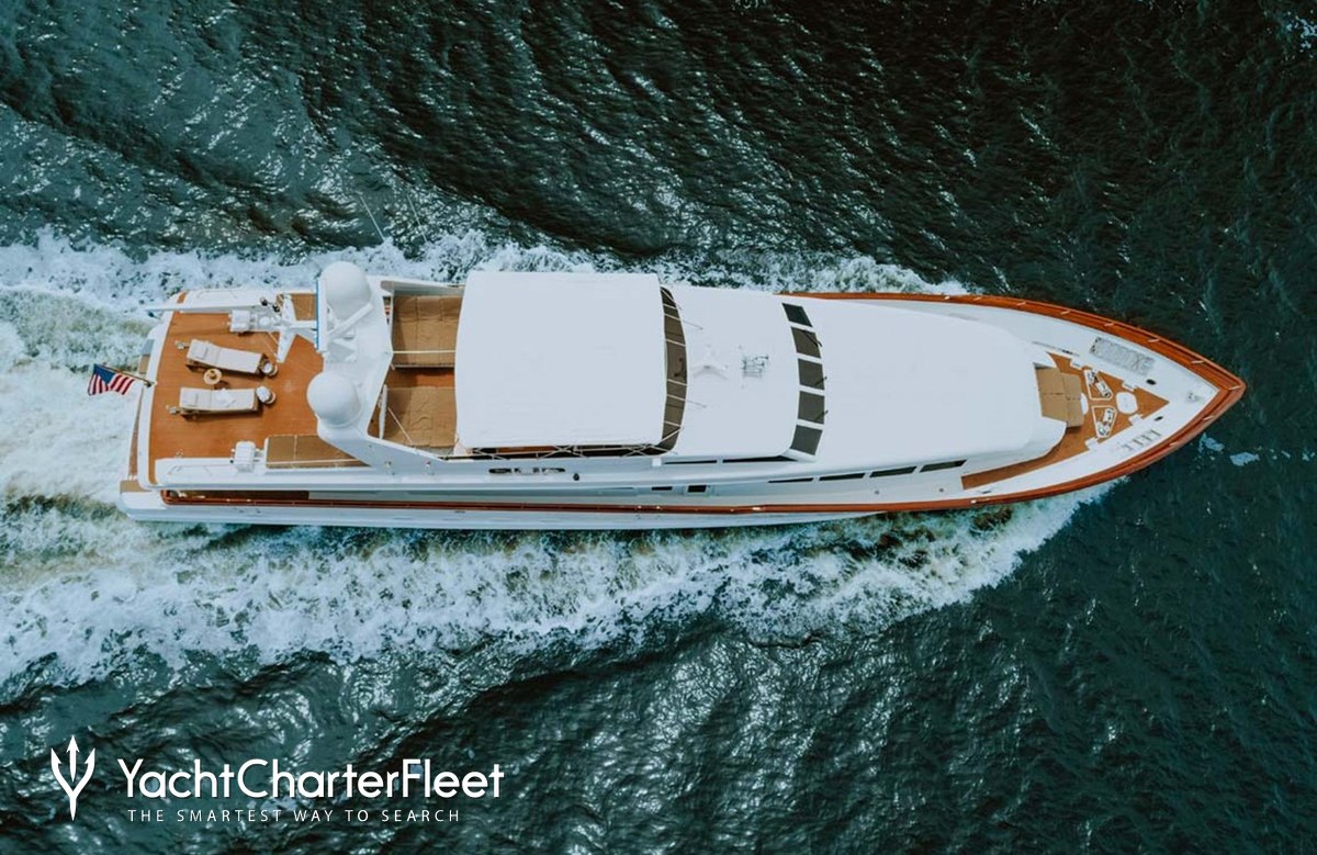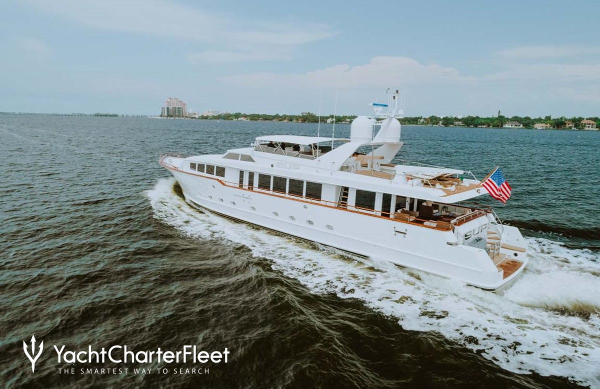 The 35.97m/118' 'Sky' motor yacht built by shipyard Broward is available for charter for up to 8 guests in 4 cabins. This yacht features interior styling by Robin Rose & Associates.