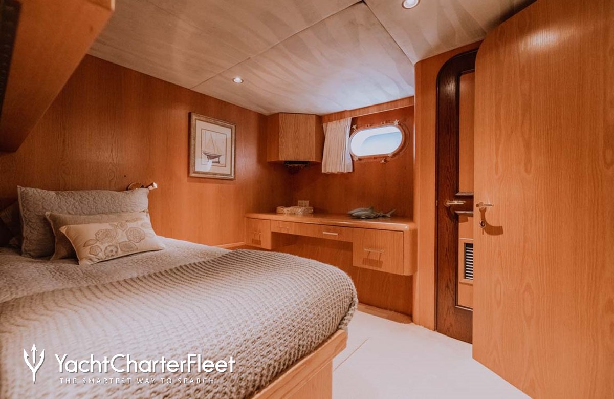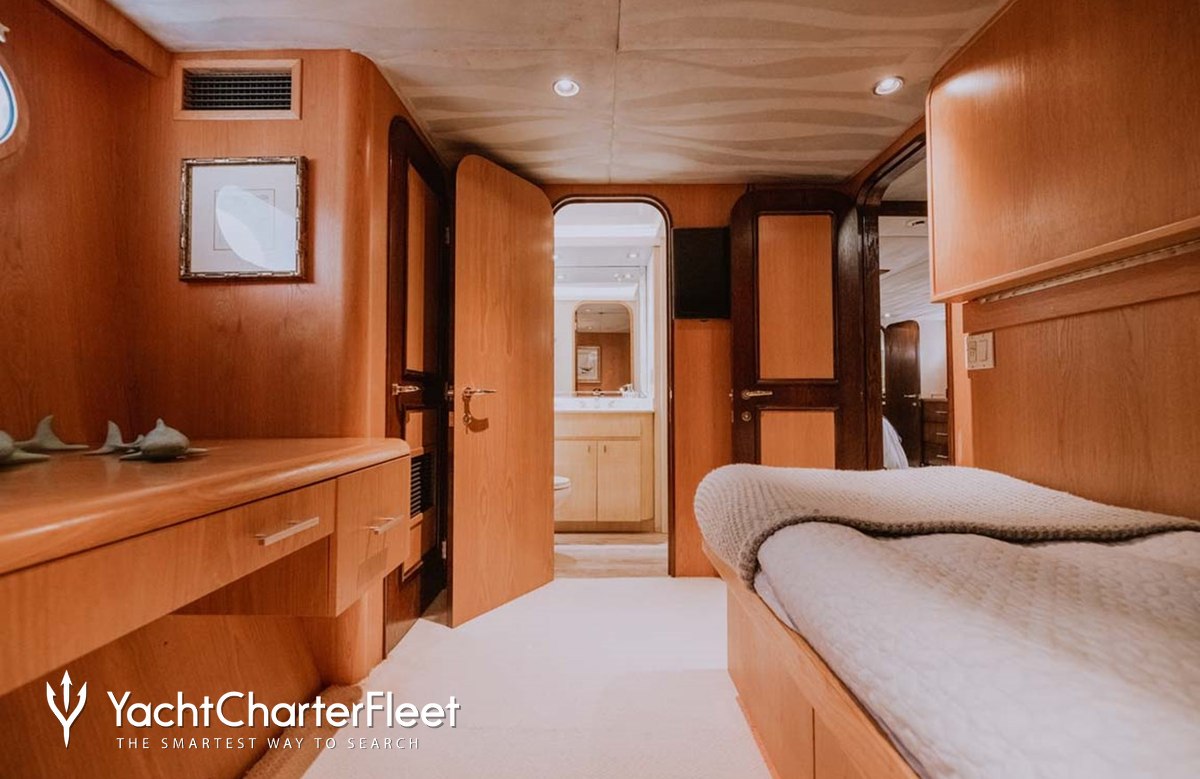 Built in 1995, Sky offers guest accommodation for up to 8 guests in 4 suites. She is also capable of carrying up to 5 crew onboard to ensure a relaxed luxury yacht charter experience.