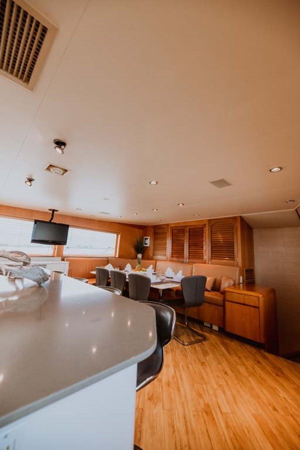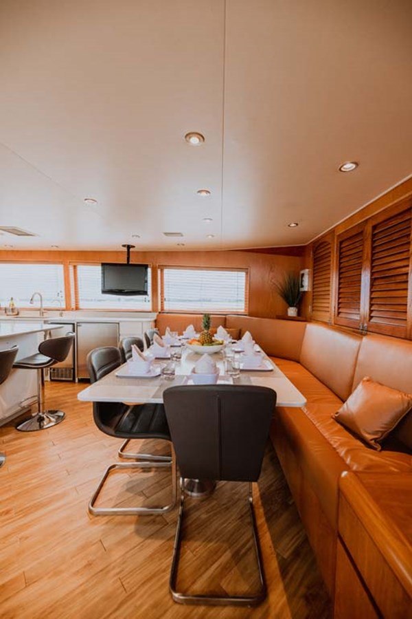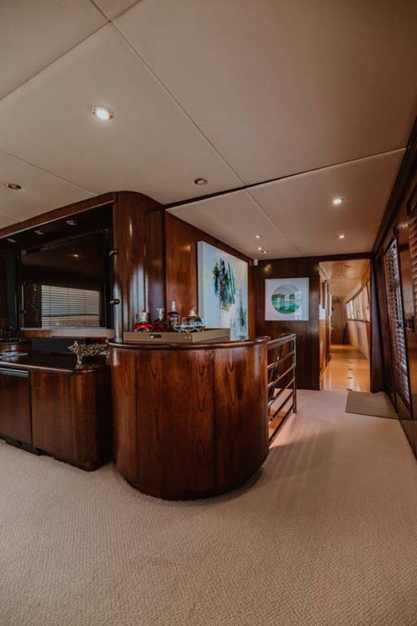 Built with a aluminium hull and aluminium superstructure, she benefits from a semi-displacement hull to provide exceptional seakeeping and impressive speeds. Powered by twin Detroit Diesel engines, she comfortably cruises at 16 knots, reaches a maximum speed of 20 knots.