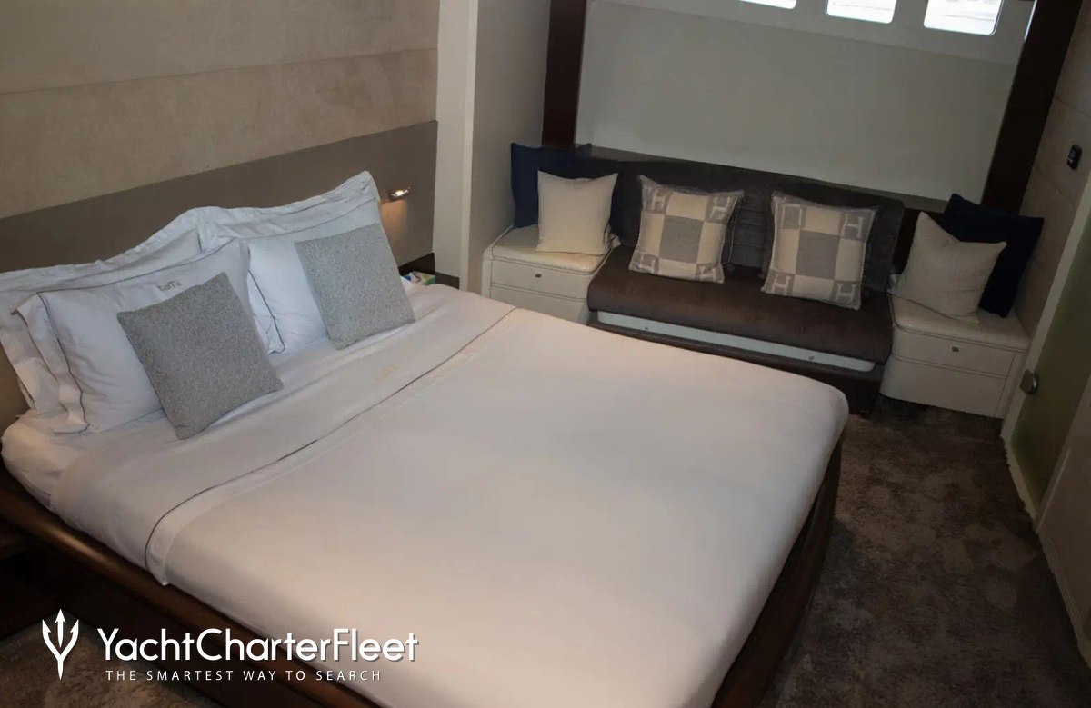 Khalili is great for families thanks to her child-friendly setup. She offers guest accommodation for up to 8 guests with a layout comprising a master suite, two double cabins and one twin cabin. There are 6 beds in total, including 1 pullman. She is also capable of carrying up to 5 crew onboard to ensure a relaxed luxury yacht charter experience.