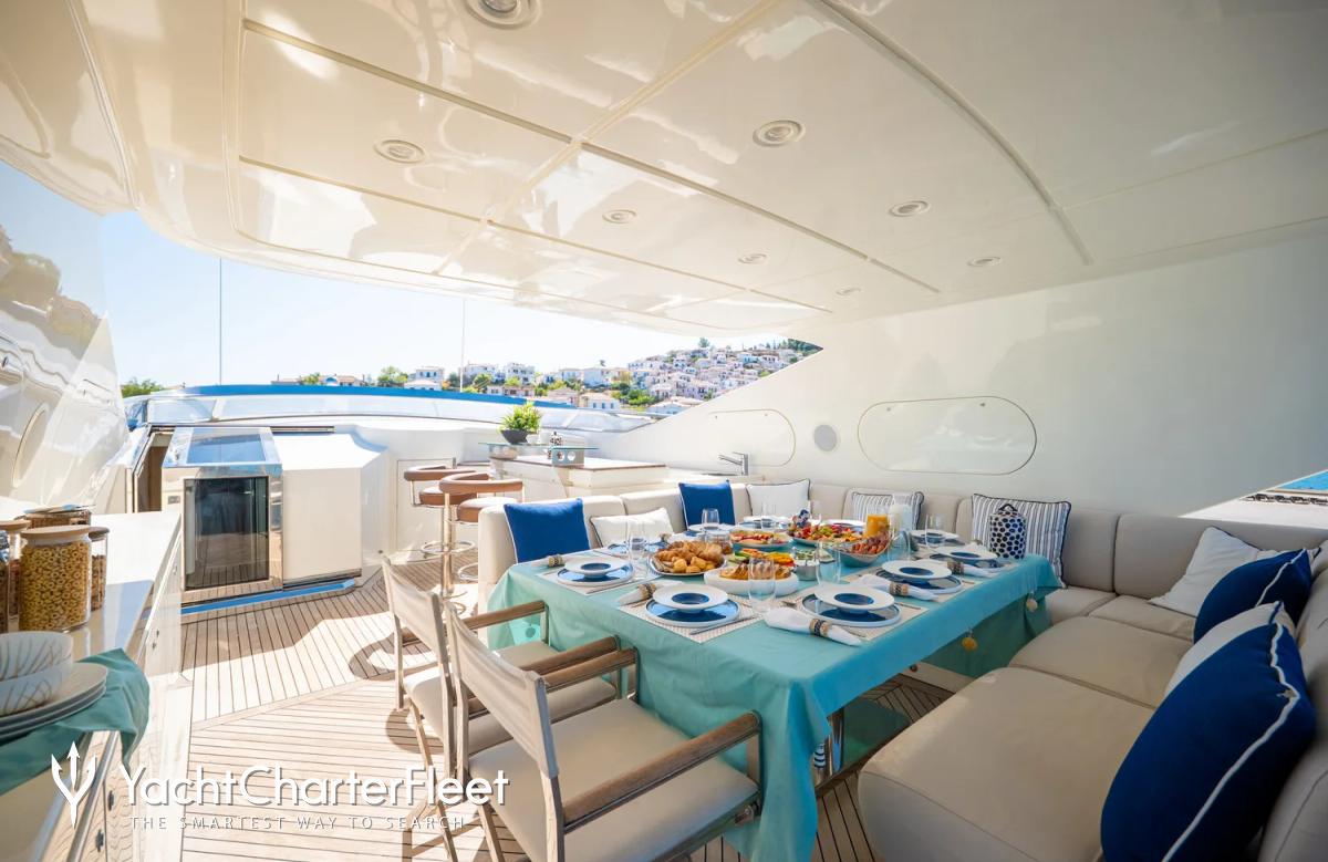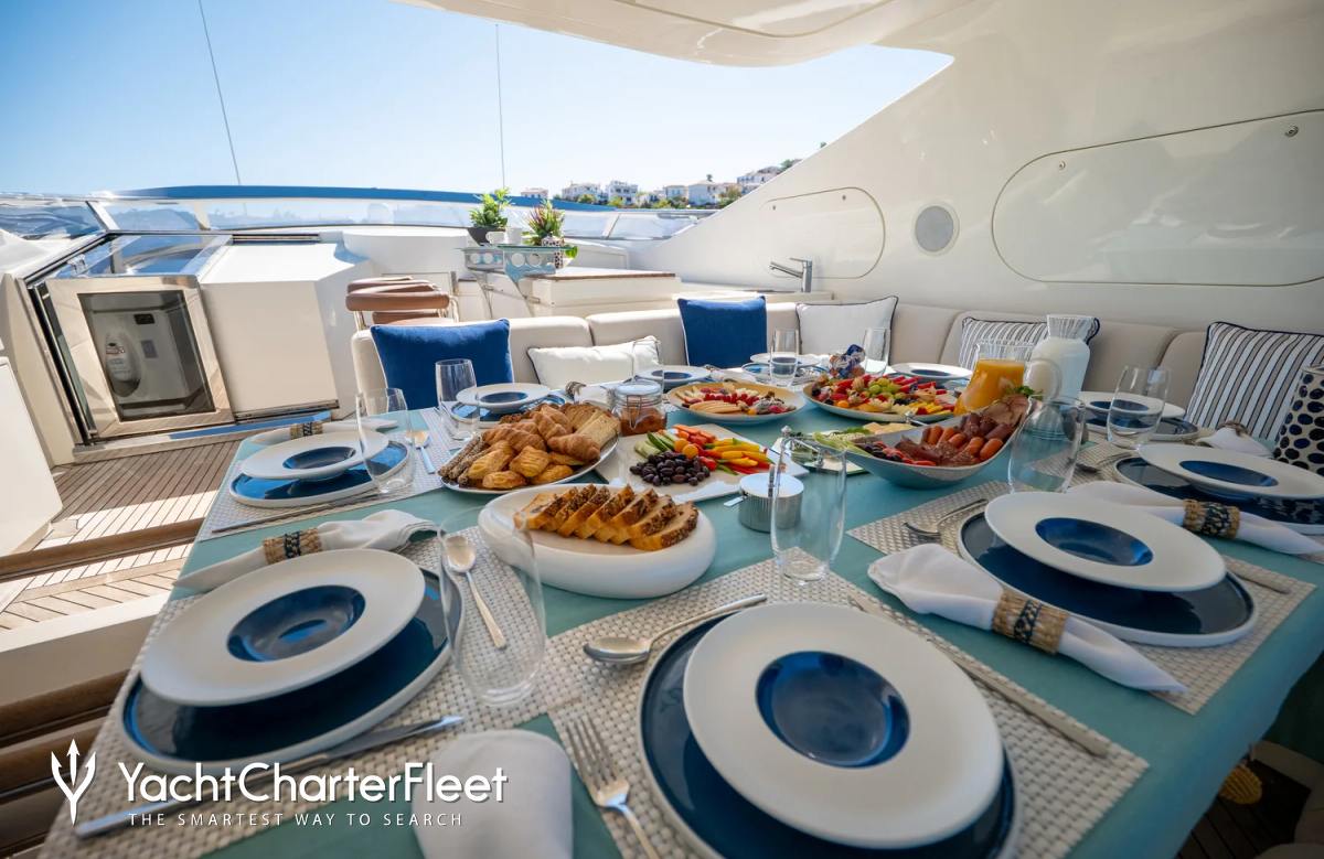 Whatever your activities on your charter, you'll find some impressive features are seamlessly integrated to help you such as Wi-Fi connectivity, allowing you to stay connected at all times, should you wish. You can stay comfortable on board whatever the weather, with air conditioning during your charter.