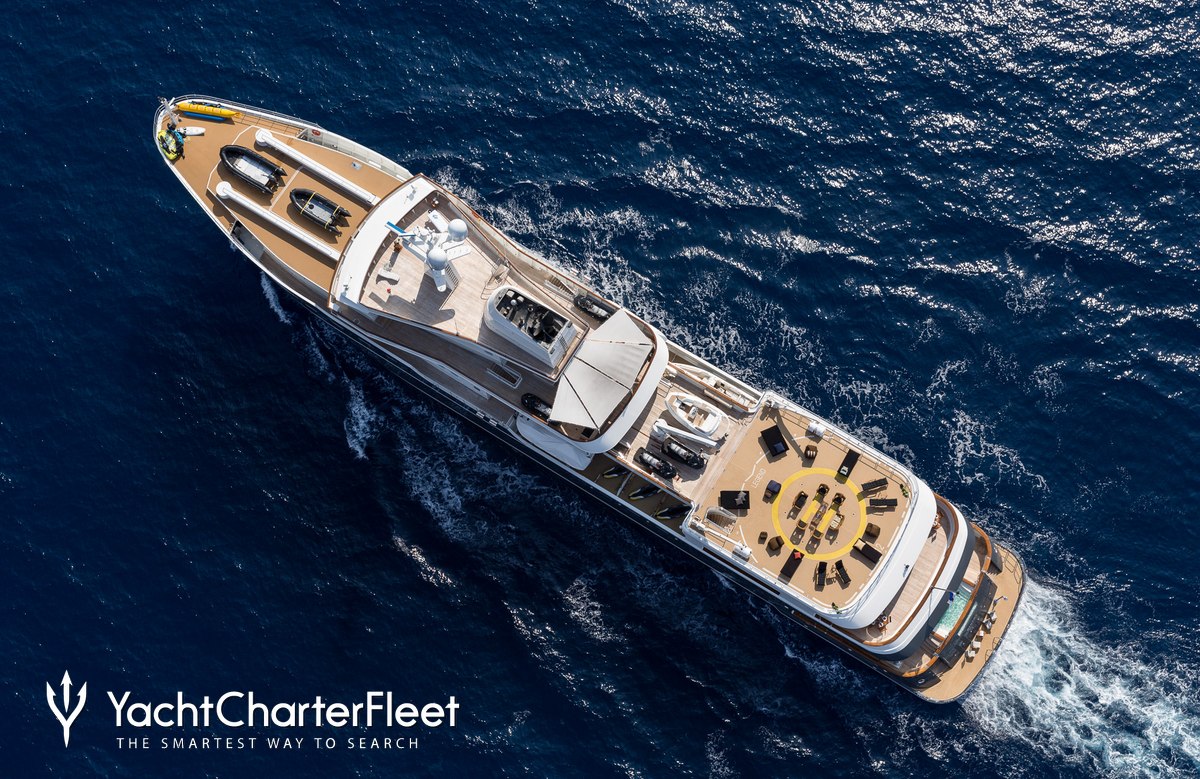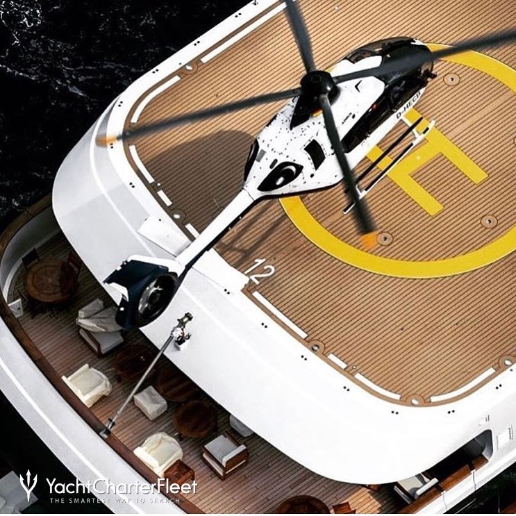 Whatever your activities on your charter, you'll find some impressive features are seamlessly integrated to help you, particularly a helipad, allowing seamless travel to and from land. Take advantage of the on board Wi-Fi and stay connected at all times or elsewhere, guests will experience complete comfort while chartering thanks to air conditioning.