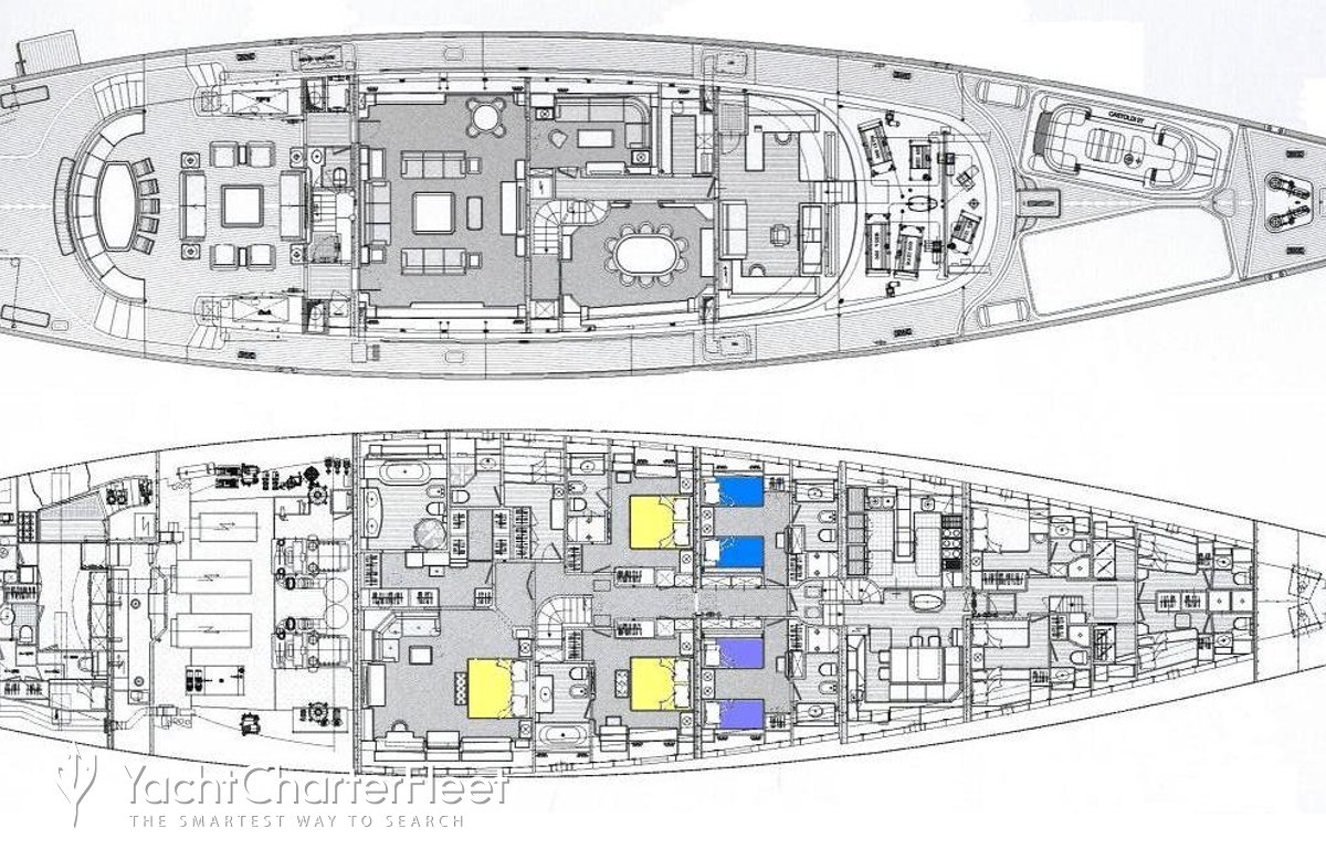 Families will particularly love Zenji thanks to her child-friendly setup. Built in 2004, She offers guest accommodation for up to 12 guests with a layout comprising a master suite, two double cabins and three twin cabins. There are 9 beds in total, including 1 king, 2 queen, 6 singles and 2 pullmans. She is also capable of carrying up to 11 crew onboard to ensure a relaxed luxury yacht charter experience.