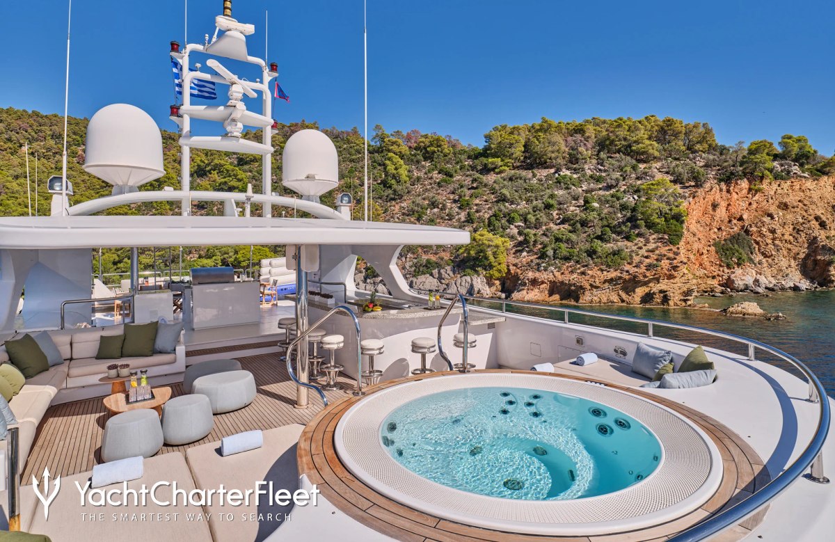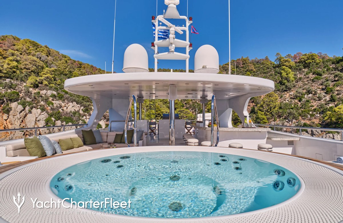Keeping comfortable and entertained on Sojo is easy thanks to the available amenities including a deck jacuzzi, perfect to enjoy the scenery with your favourite drink in hand.