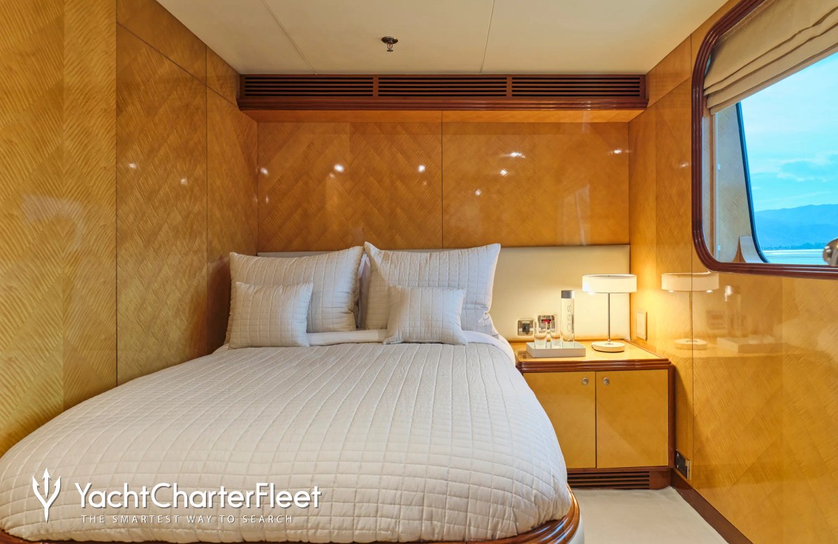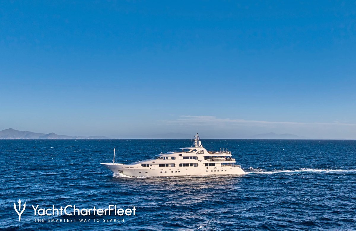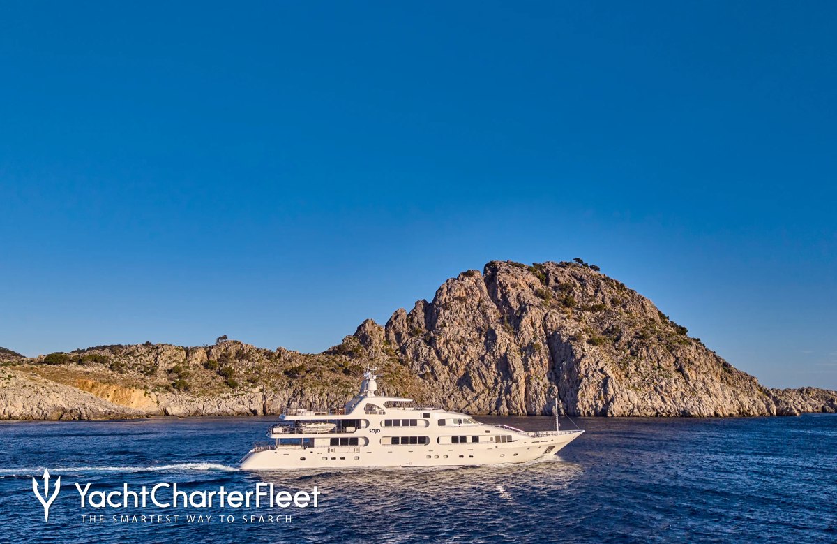 Built in 1984, Sojo offers guest accommodation for up to 12 guests in 6 suites comprising a master suite, one VIP cabin, two double cabins and two twin cabins. Additionally, there are 2 staff cabins aboard. She is also capable of carrying up to 18 crew onboard to ensure a relaxed luxury yacht charter experience.